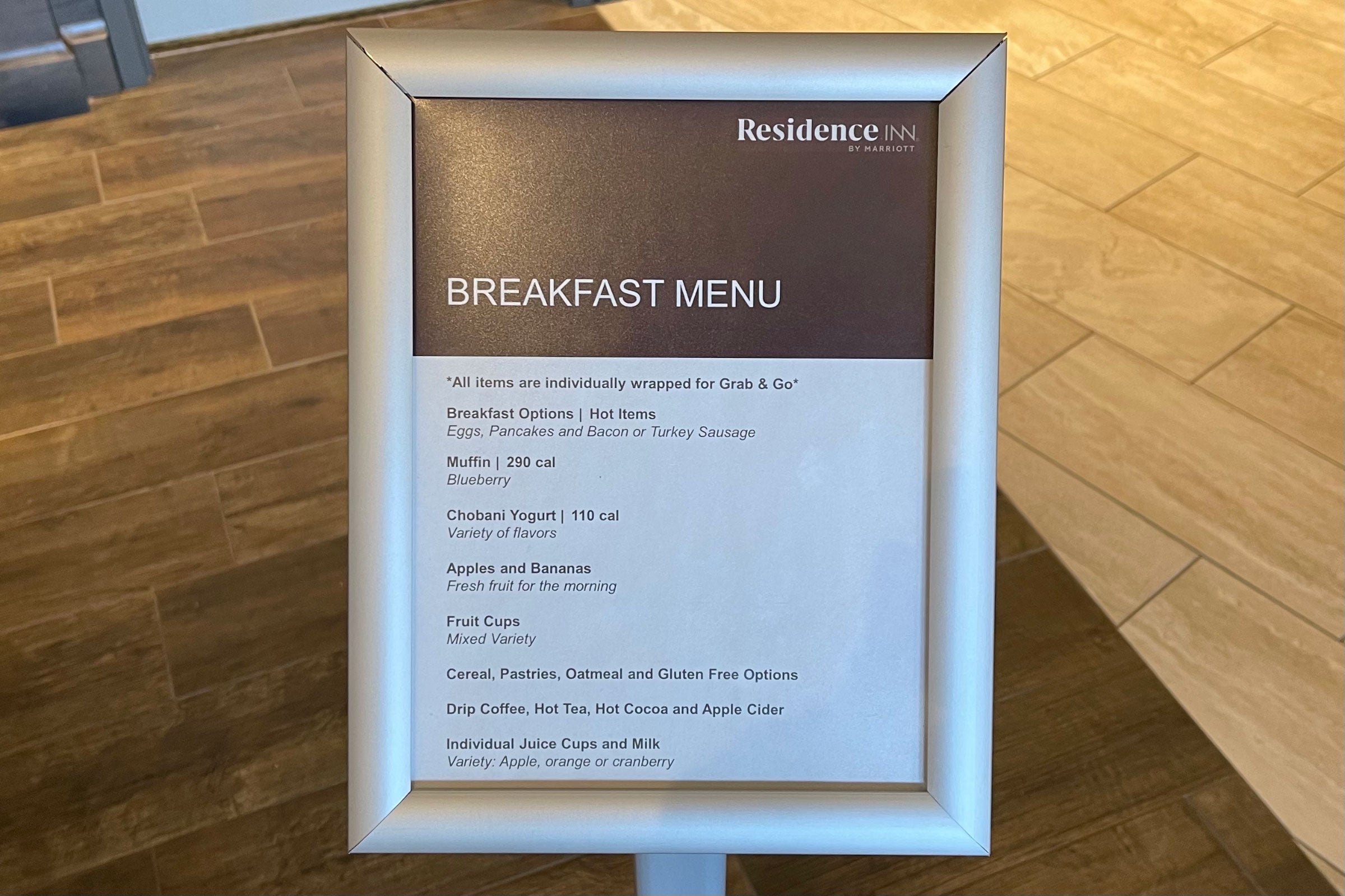 There's a menu posted by the front desk, but you can also just walk up and take a look at the offerings available each morning.