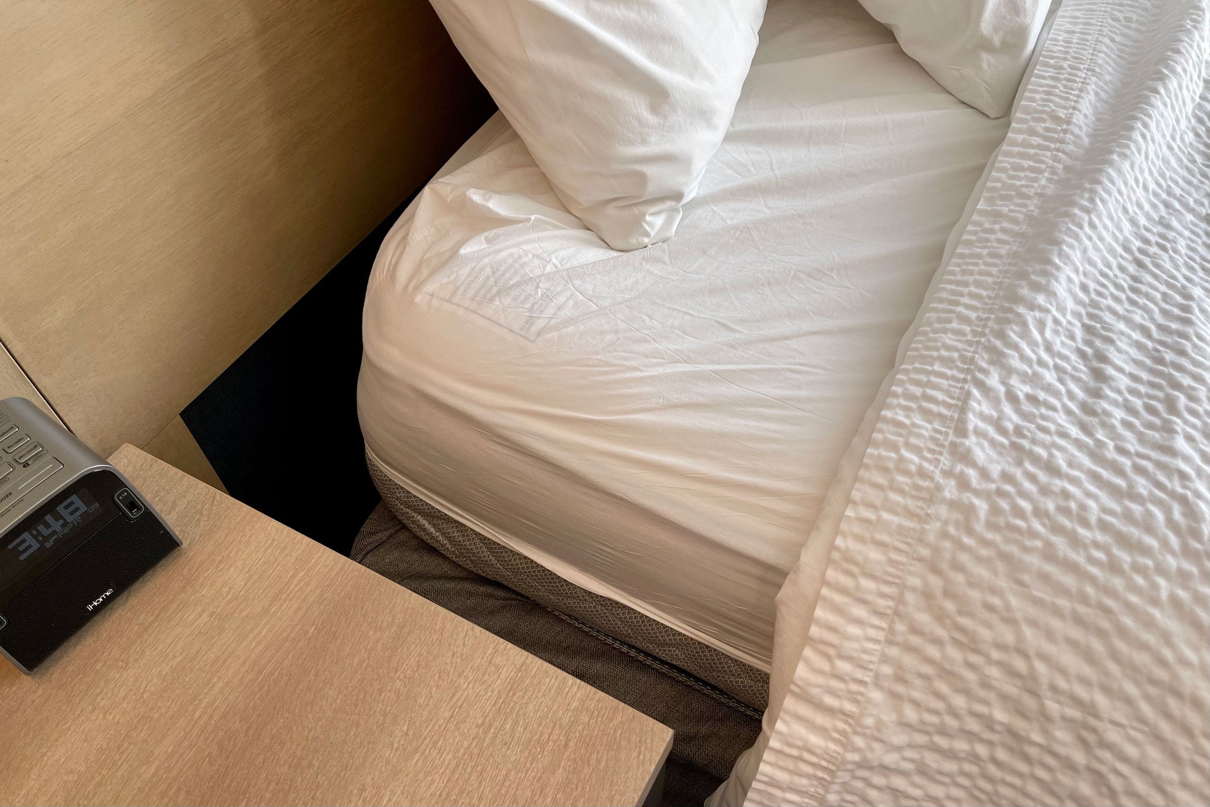 The bedding also looked like it had been swapped in a rush — the fitted sheets weren't pulled down to cover the mattress, and the finished product hardly looked picture-perfect, as you can see in the room photos above.