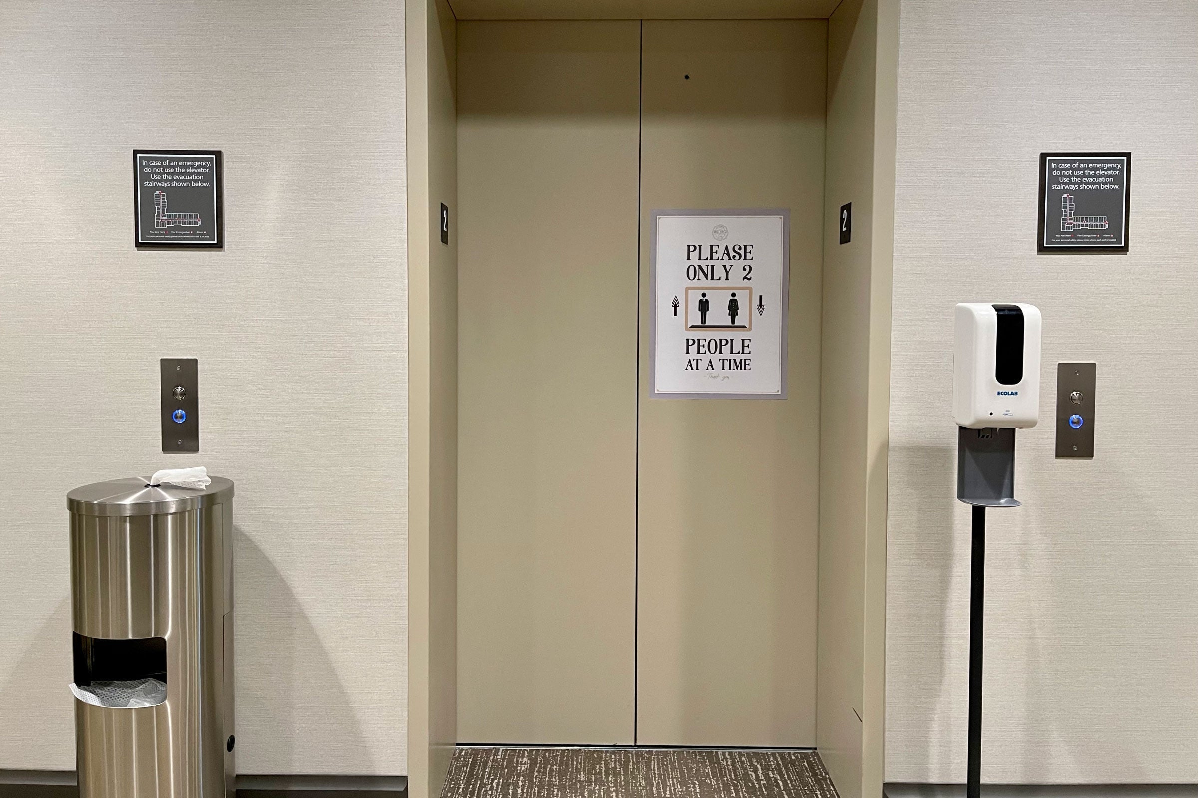 As for COVID-19 precautions, the hotel offered wipes throughout the common areas, along with hand sanitizer dispensers (that were actually full). Smaller elevators were limited to two guests at a time, with the large elevator accommodating four, though some guests weren't especially mindful of those restrictions.
