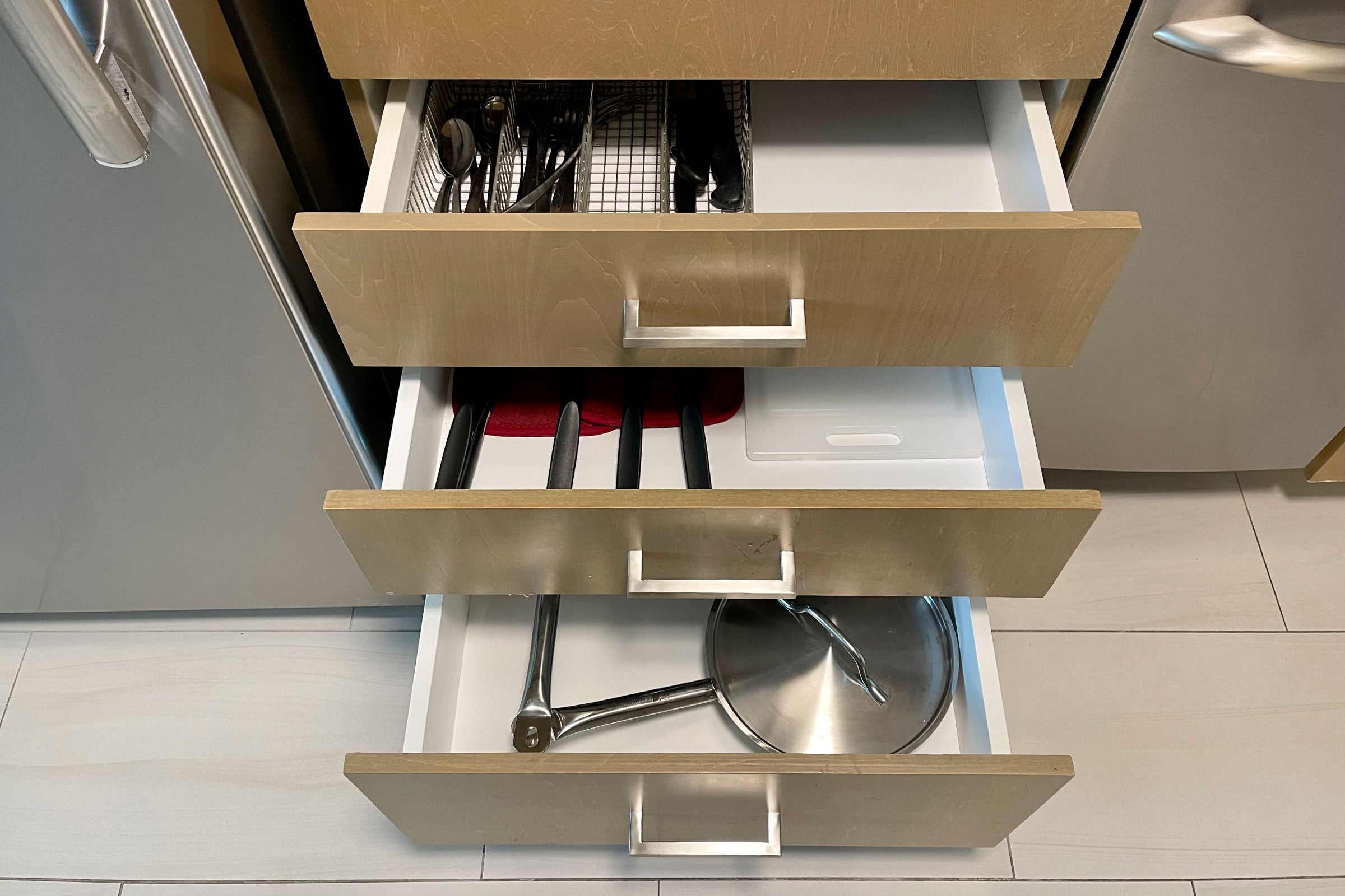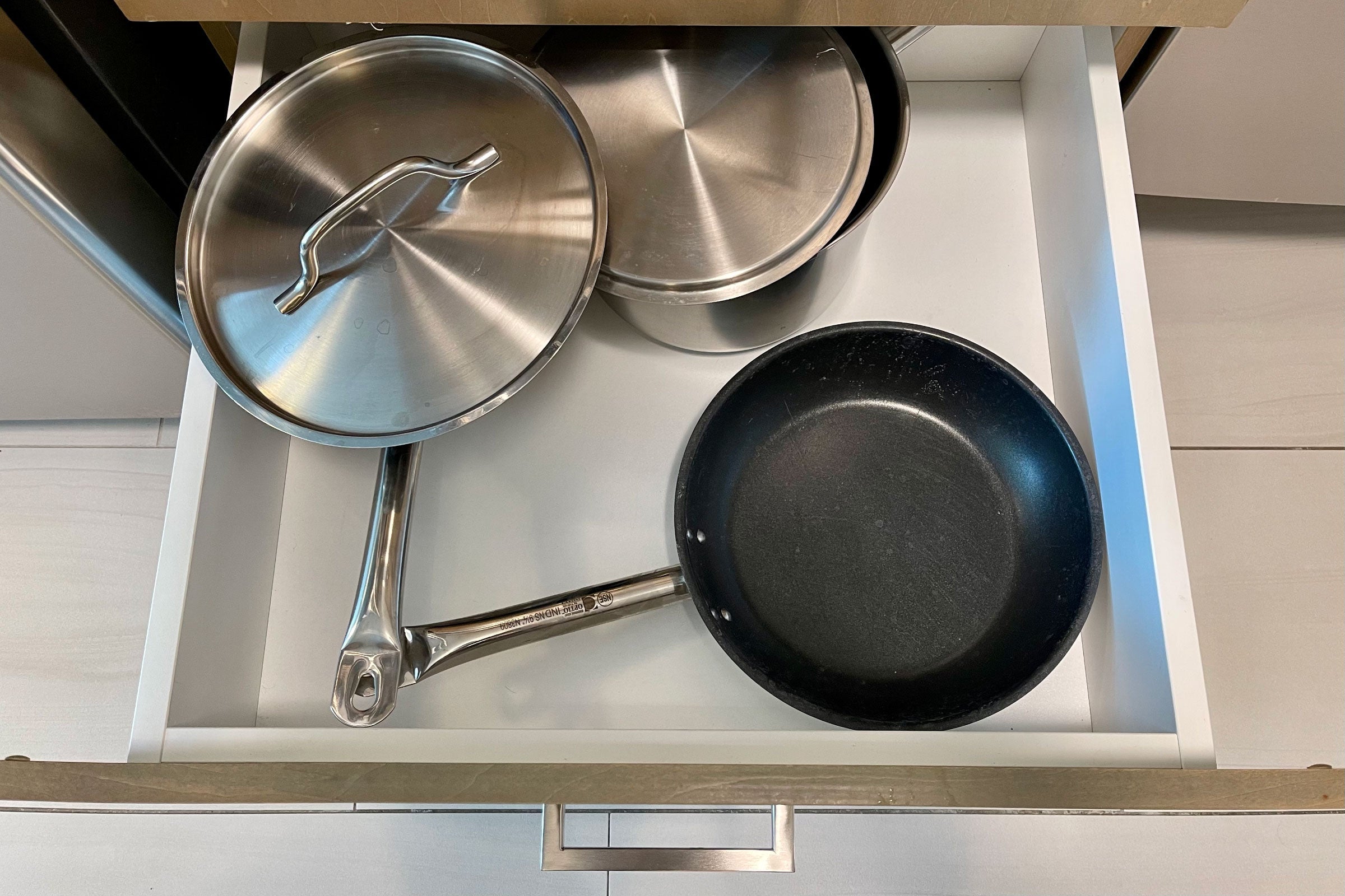 Pots and pans also seemed borderline filthy — the pan looked like it had barely been rinsed before being shoved back in a drawer.