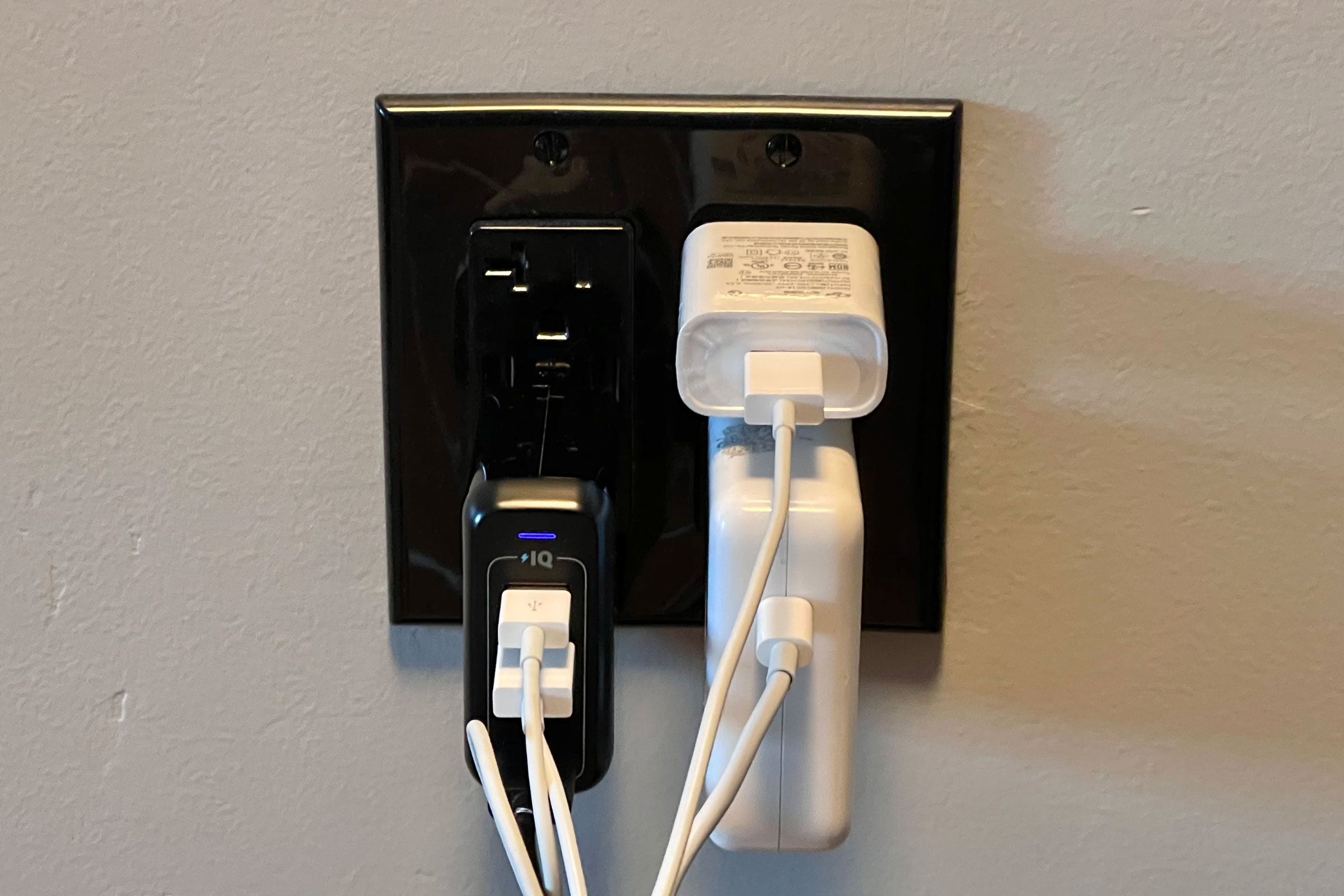 And there were outlets all around the room — each included built-in USB ports, though we chose to use our adapters to charge up our gadgets a bit more quickly.