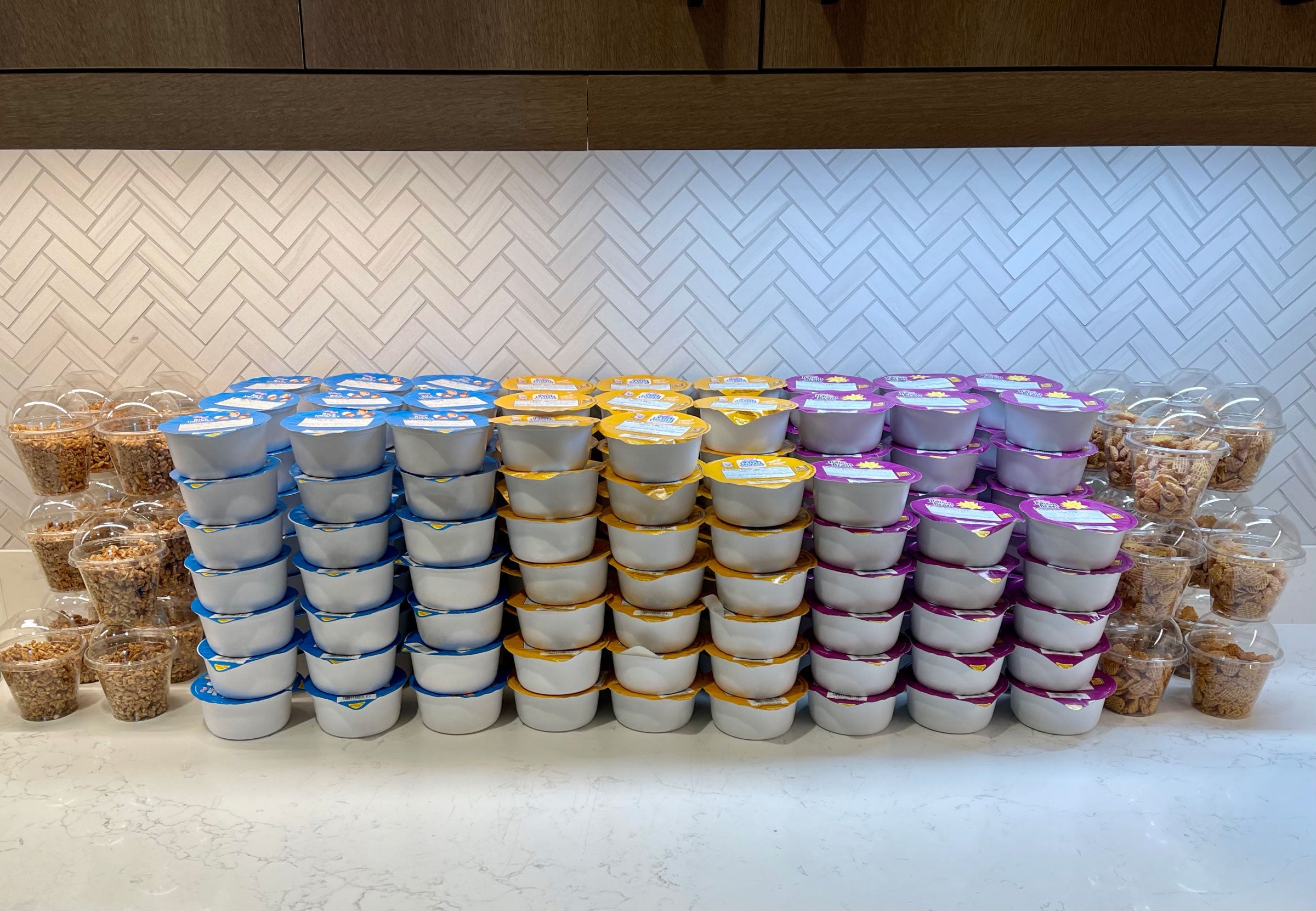 There was a tower of cereal, as well — all served in plastic containers.