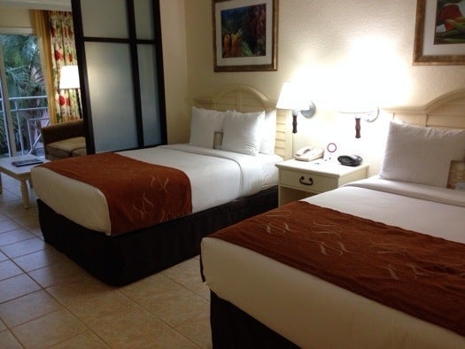 I can admit I'm a little spoiled when it comes to hotels, and I enjoy a fancy property at least as much as the next person. However, in the end, clean and safe is good enough for us, but during our previous beach trip to St. John, the hotel we stayed at was not as clean as I would have liked, so I was really hoping to not have a repeat of that scenario. I was just hoping for the best out of the Comfort Suites Paradise Island, and I was really relieved when we arrived at the property as it seemed to be a very solid three star property. Most importantly, it looked clean!