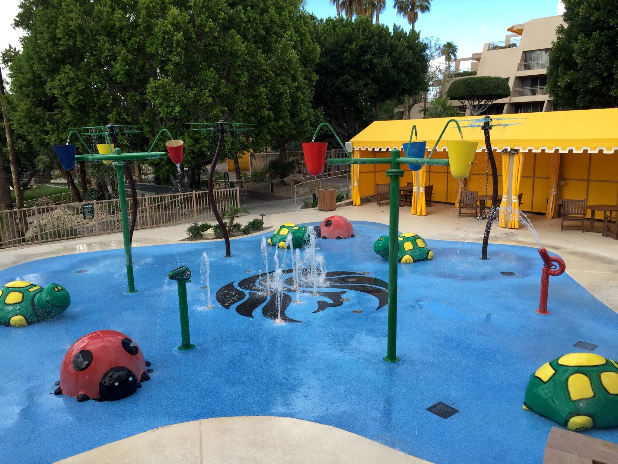 With little kids, pools are nice, but splash pads can sometimes be even better since you don't have to stress as much when kids are of the age that they are still learning how to safely swim. This hotel has a large and well-designed splash pad that even has surrounding shaded cabanas.