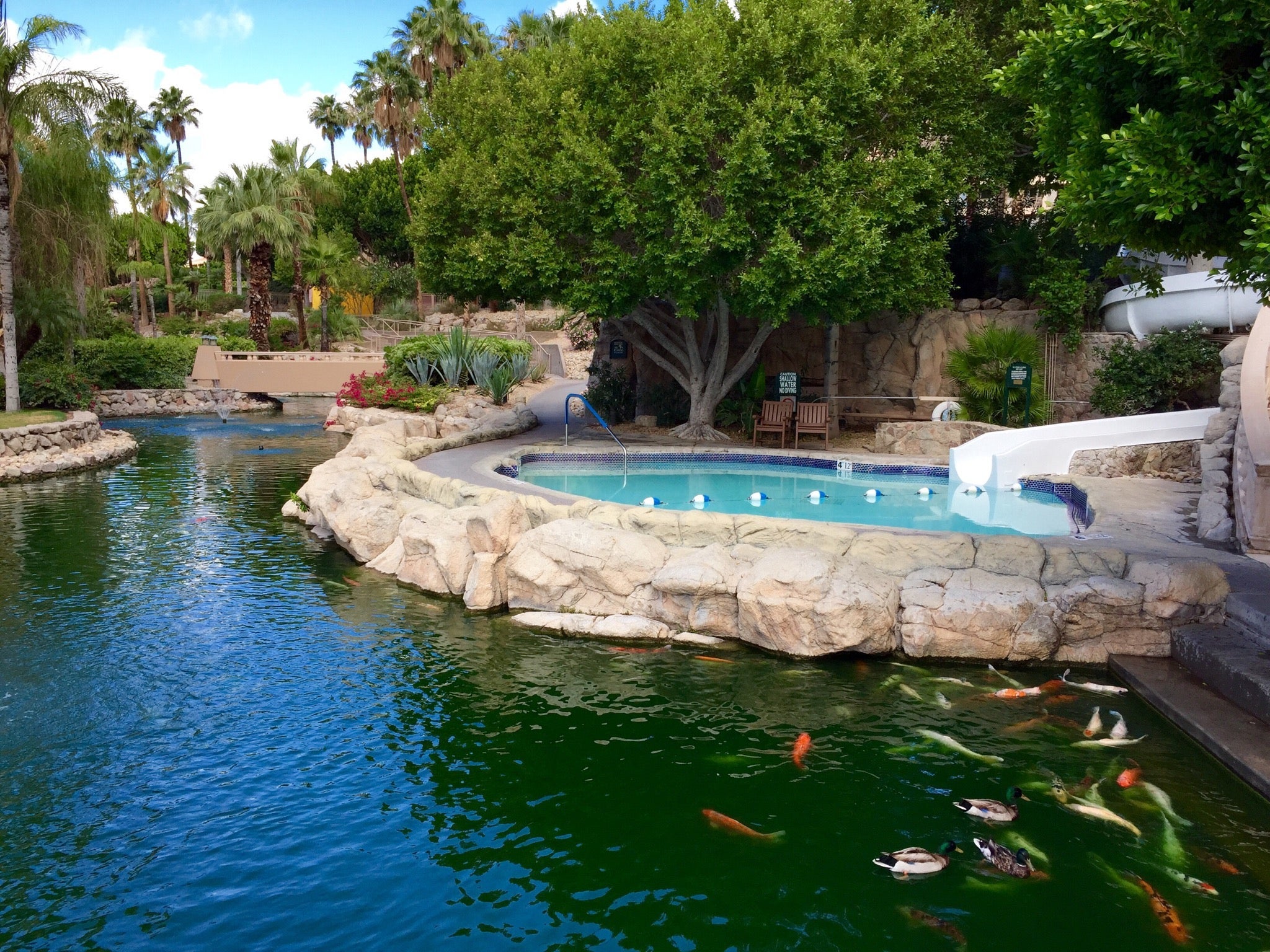 While not exactly a pool itself, right next to the pool complex is a koi pond where you can participate in fish feeding in the mornings.