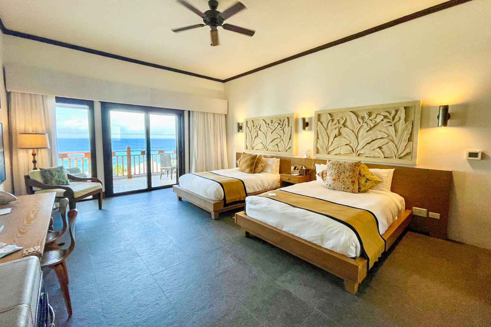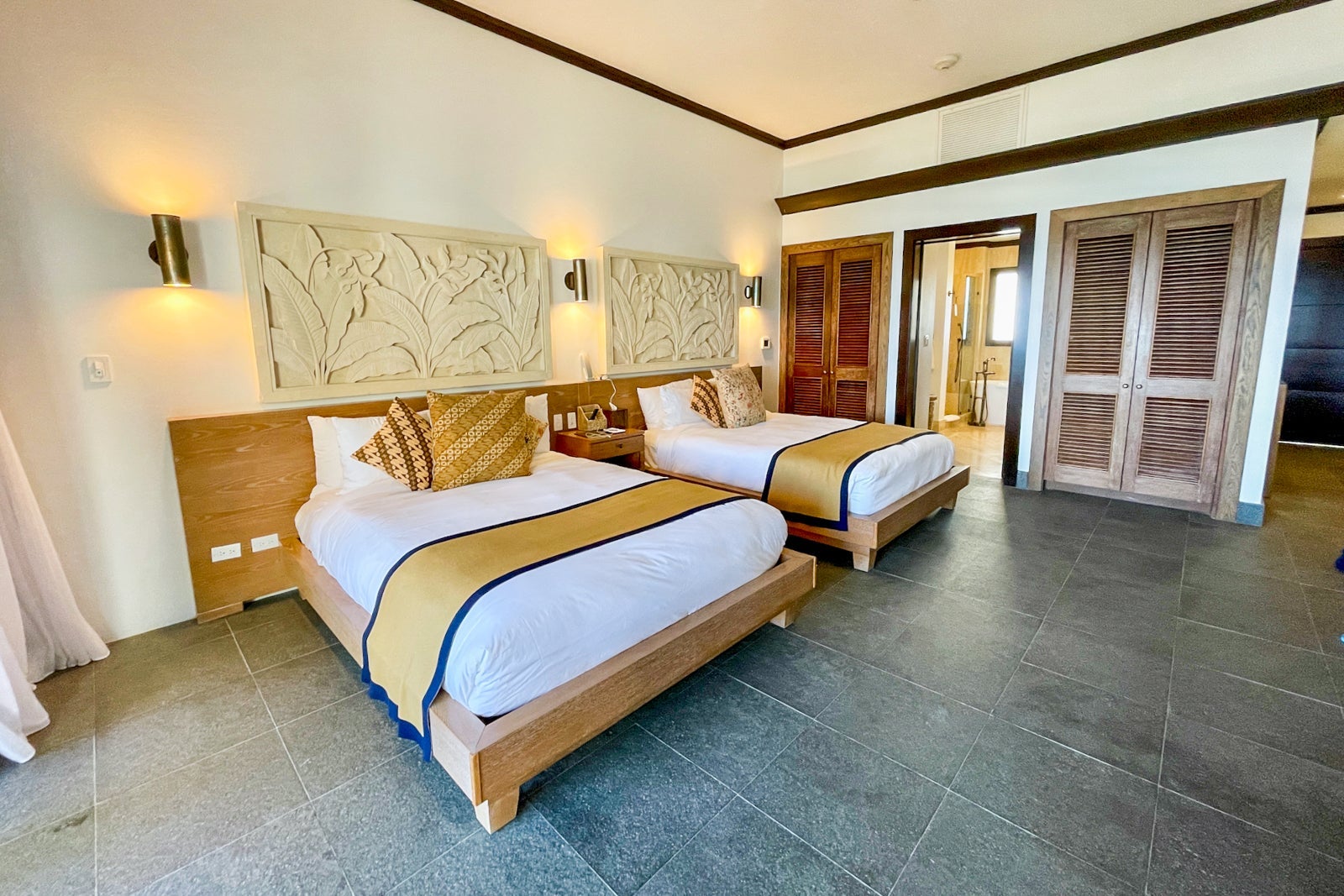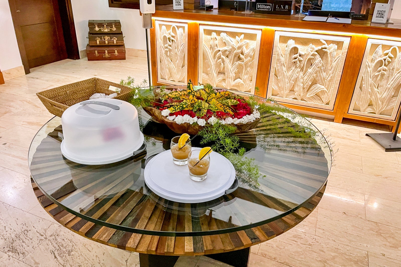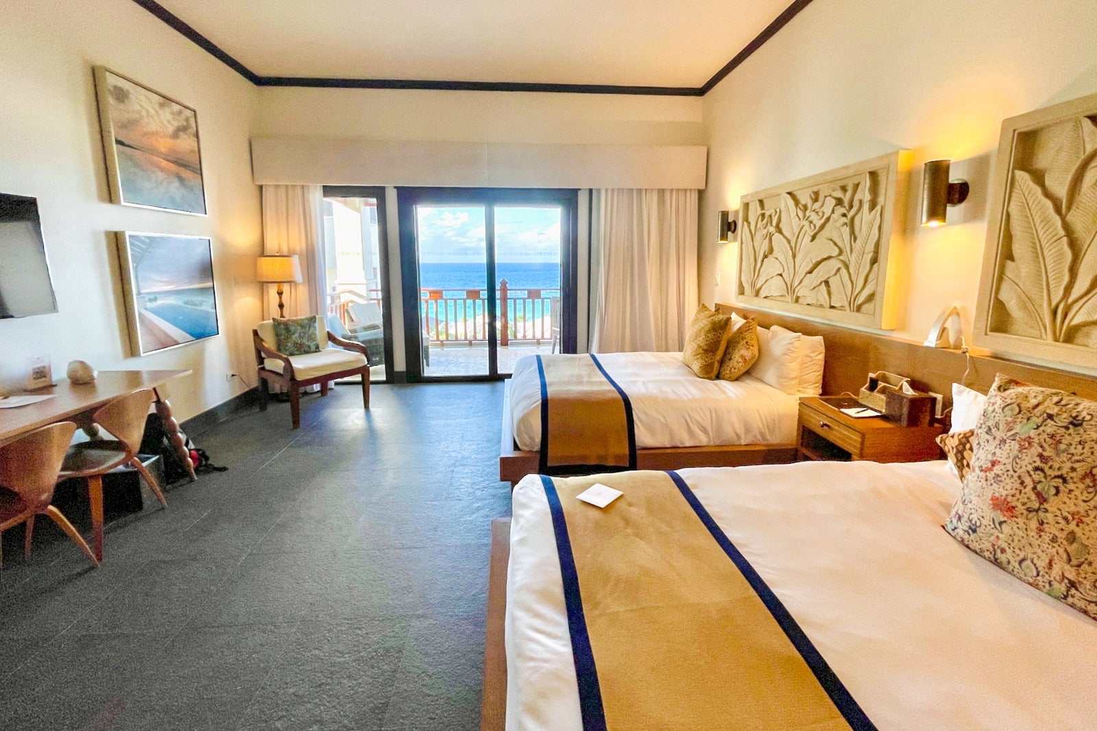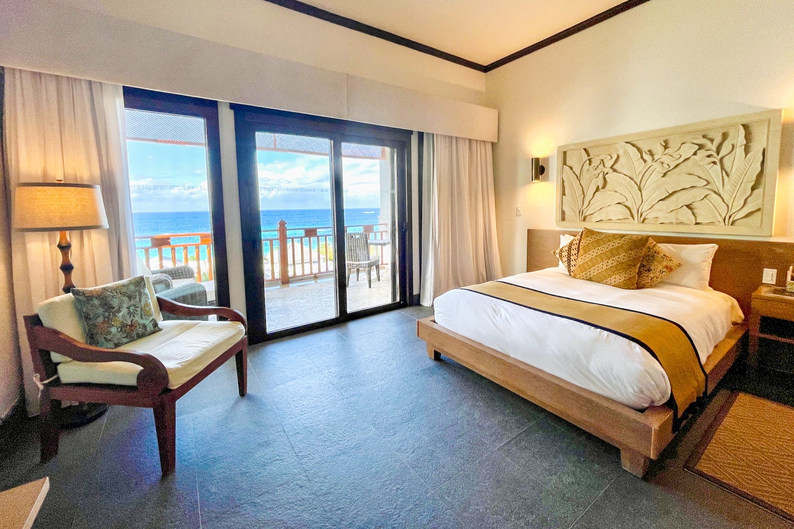 The front desk staff was super friendly, but I was disappointed to learn that my top-tier Hilton Diamond Status wouldn't get me many benefits on this stay. Breakfast and Wi-Fi were already included for all guests and the hotel only upgrades elites to rooms with better views, not suites. So even if you book an ocean view room outright, don't expect an upgrade to a room with a plunge pool or one of the apartment-style suites.