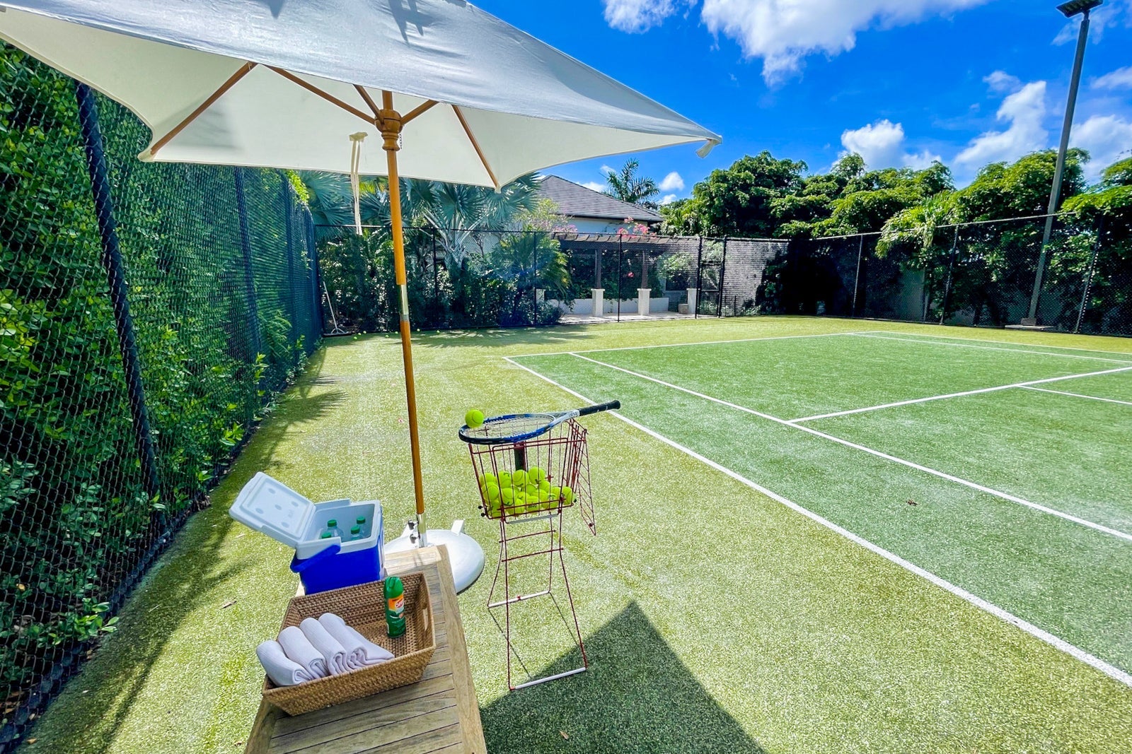 Just across the spa is an astroturf tennis court. It is free to use during the day and racquets are included, too. The hotel had provided a cooler with water bottles, towels and bug spray, which was a thoughtful touch.