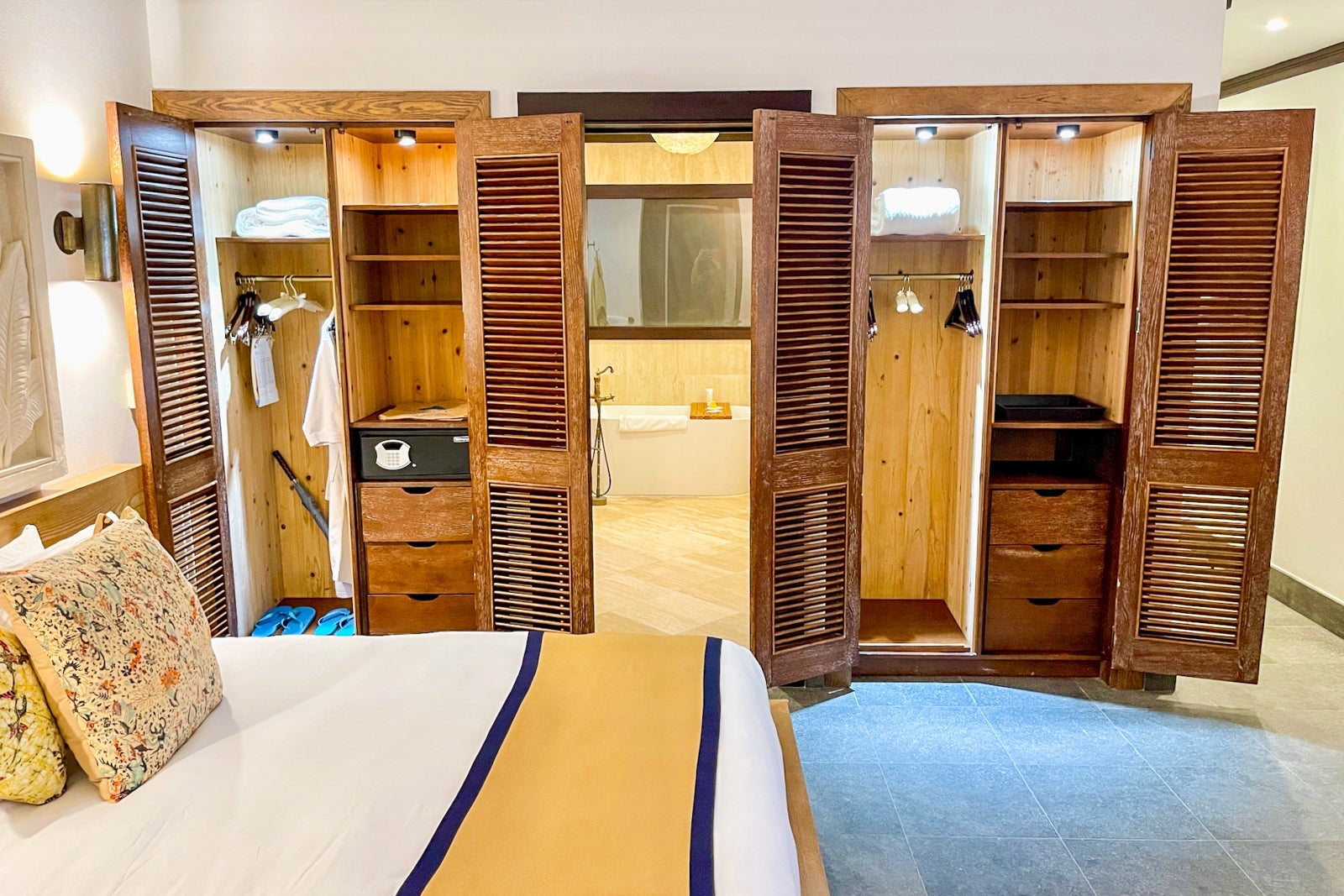 There were two closets where you could find the usual amenities as well as complimentary flip flops and a beach bag – two fewer things to pack. However, there weren't any slippers — and they weren't available upon request.