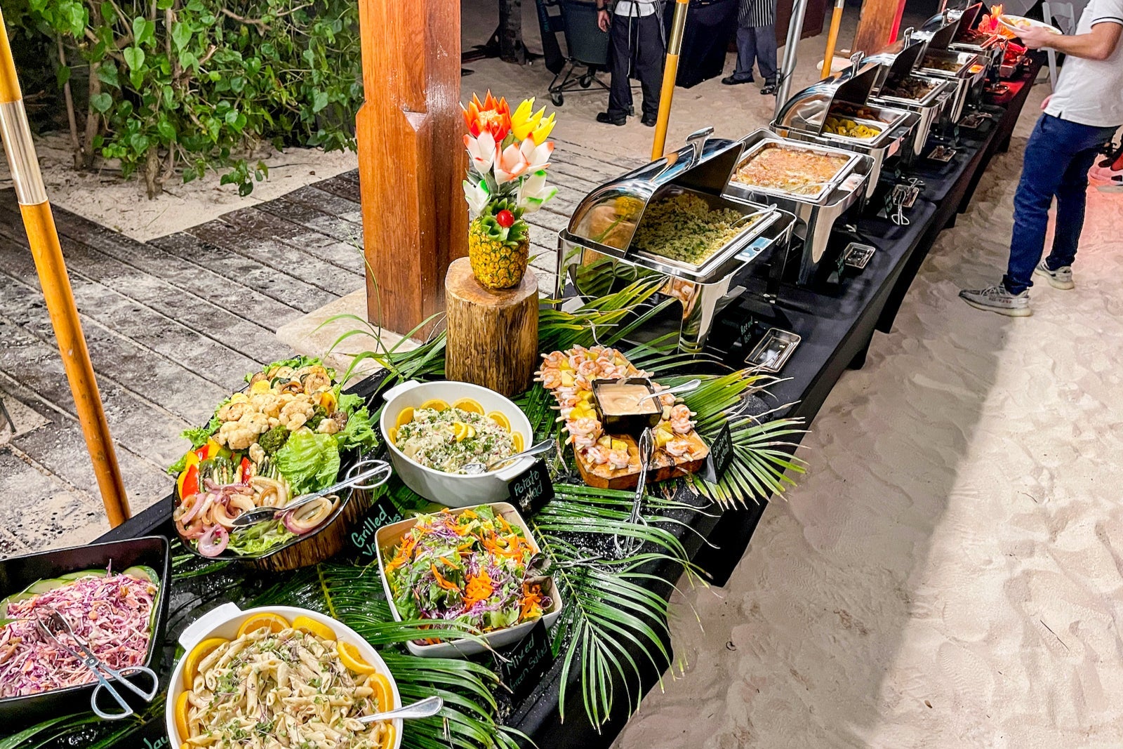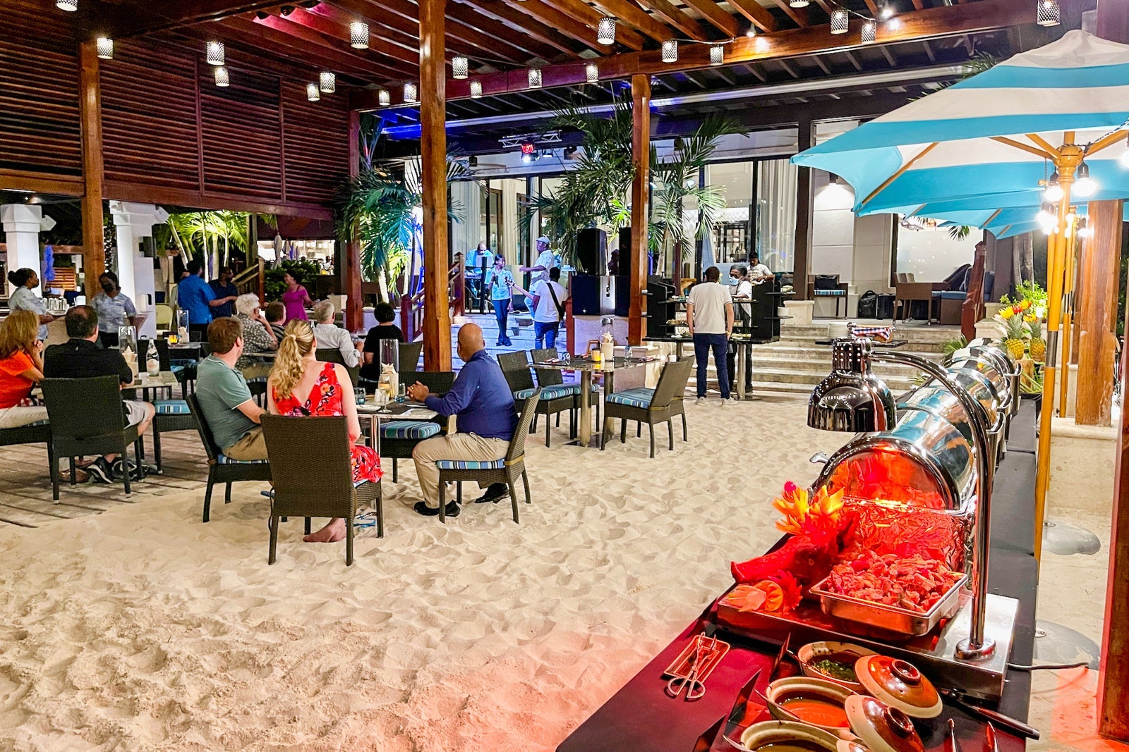 The first was a Caribbean beach BBQ and it was not to miss. It cost $65 and included a buffet of salads and fresh-off-the-grill meat and seafood, including lobster. This was definitely the tastiest meal we had on site at a relatively good value.
