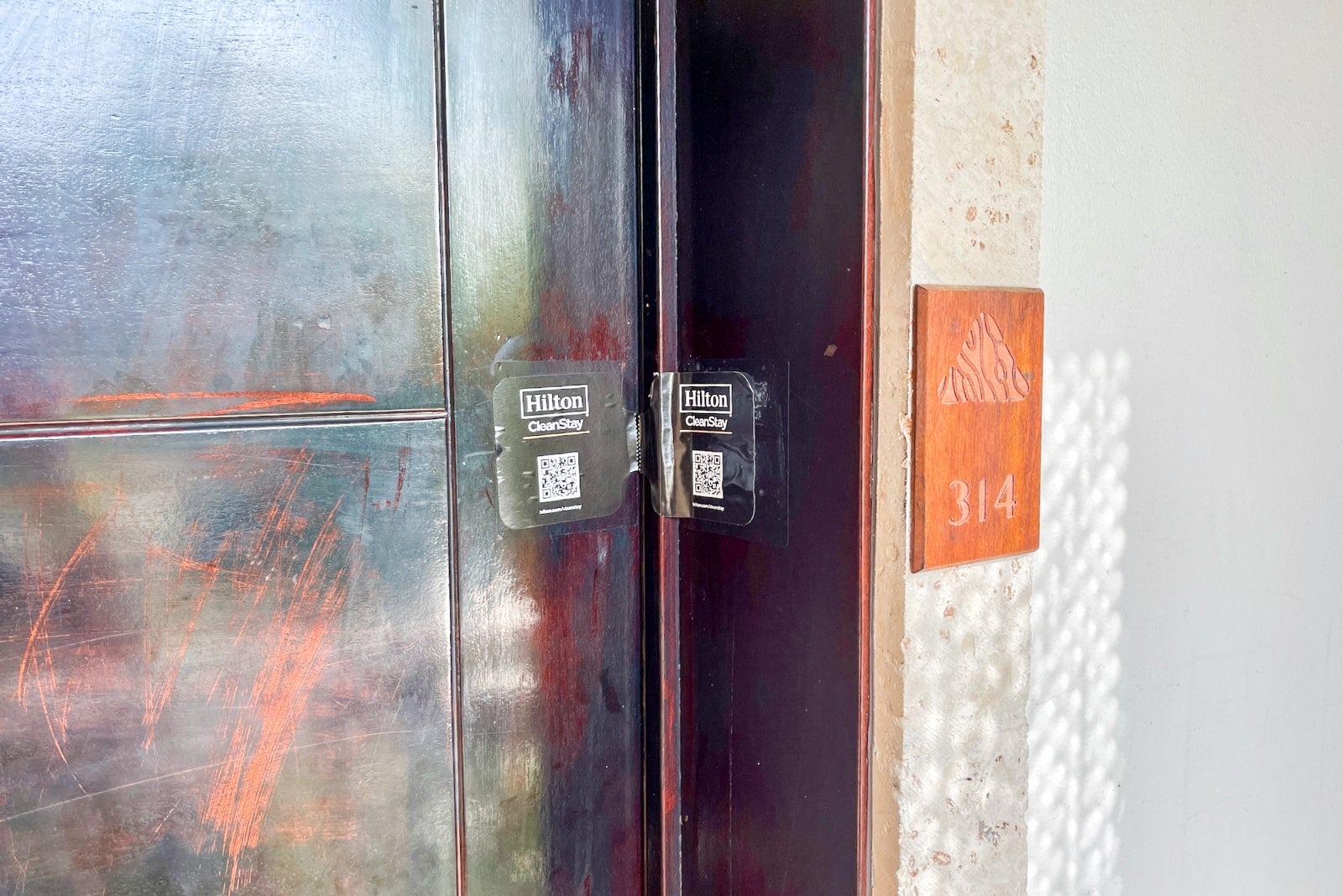 I was assigned a two queen ocean view room on the third floor of building number three, which is the furthest of the bunch. While no longer required by Hilton, there was a seal on the door signifying the room had been deep-cleaned and undisturbed since that cleaning.