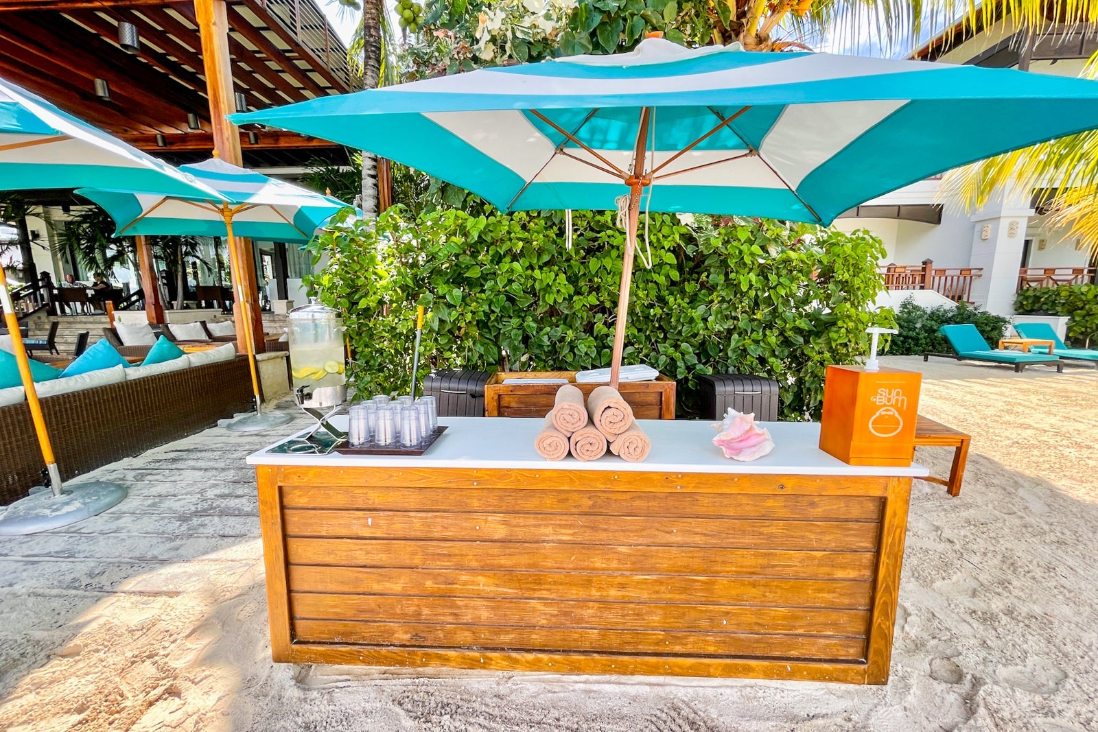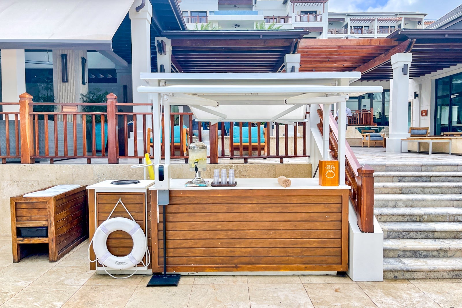 The pool deck was stocked with fruit-infused water and free sunscreen — another thing you don't need to pack (or overpay for on the island).