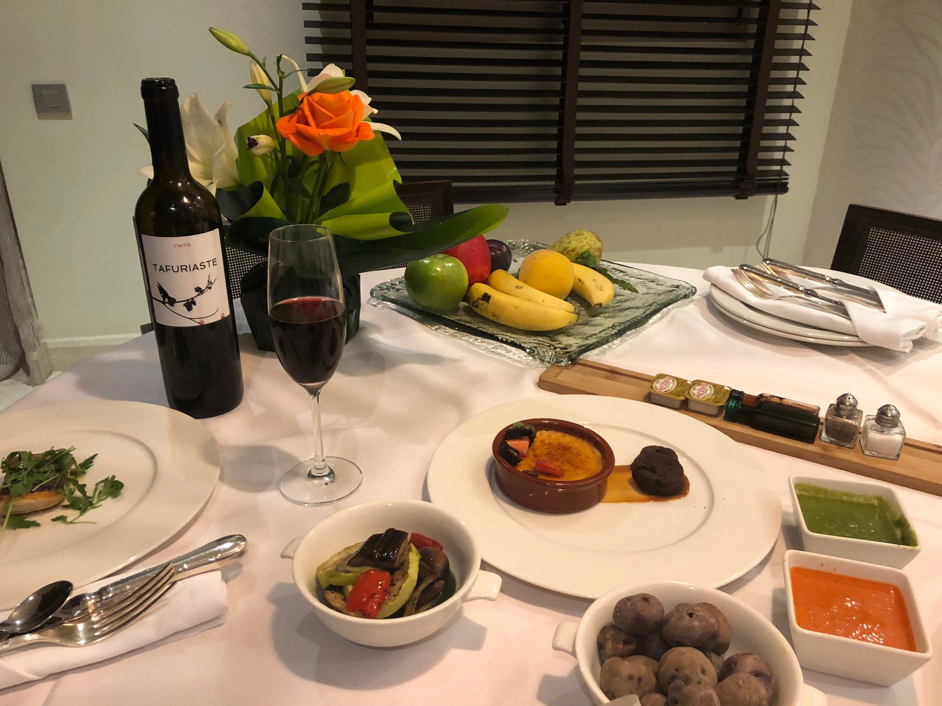 We paired the meal with a bottle of wine from one of the volcanic vineyards on the islands I had picked up at a local grocery store for about 6 euros ($7). Similar wines on the room-service menu were going for much higher.