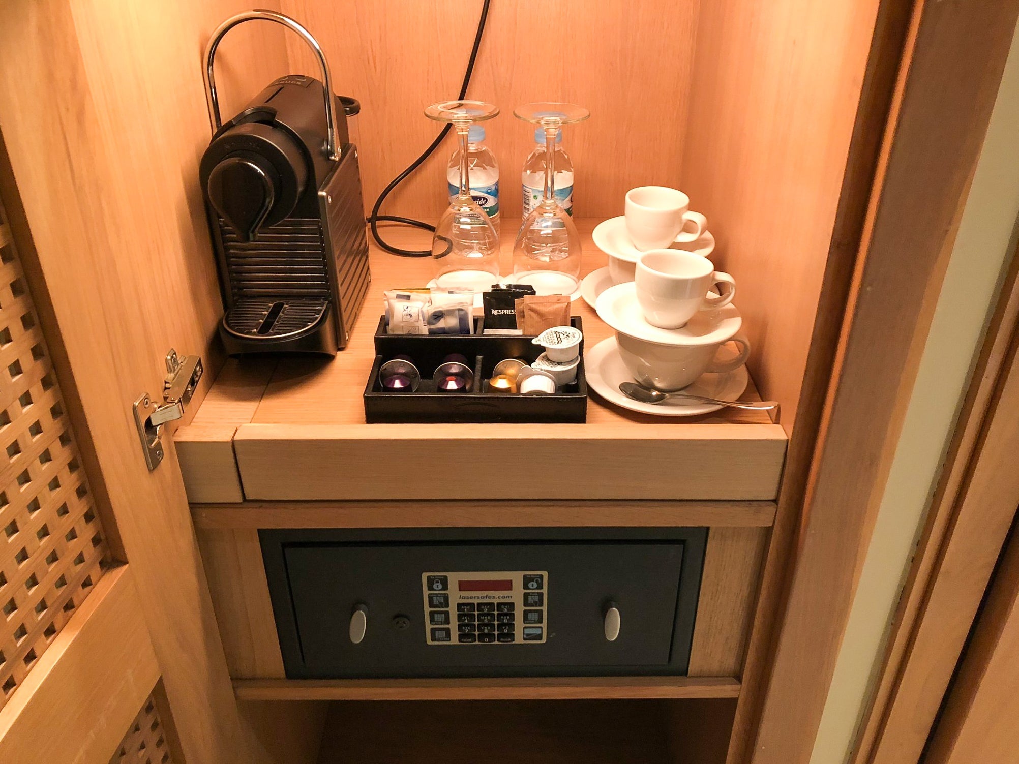 The closets offered plenty of storage space, as well as a safe and a Nespresso machine with free capsules that were replaced daily.