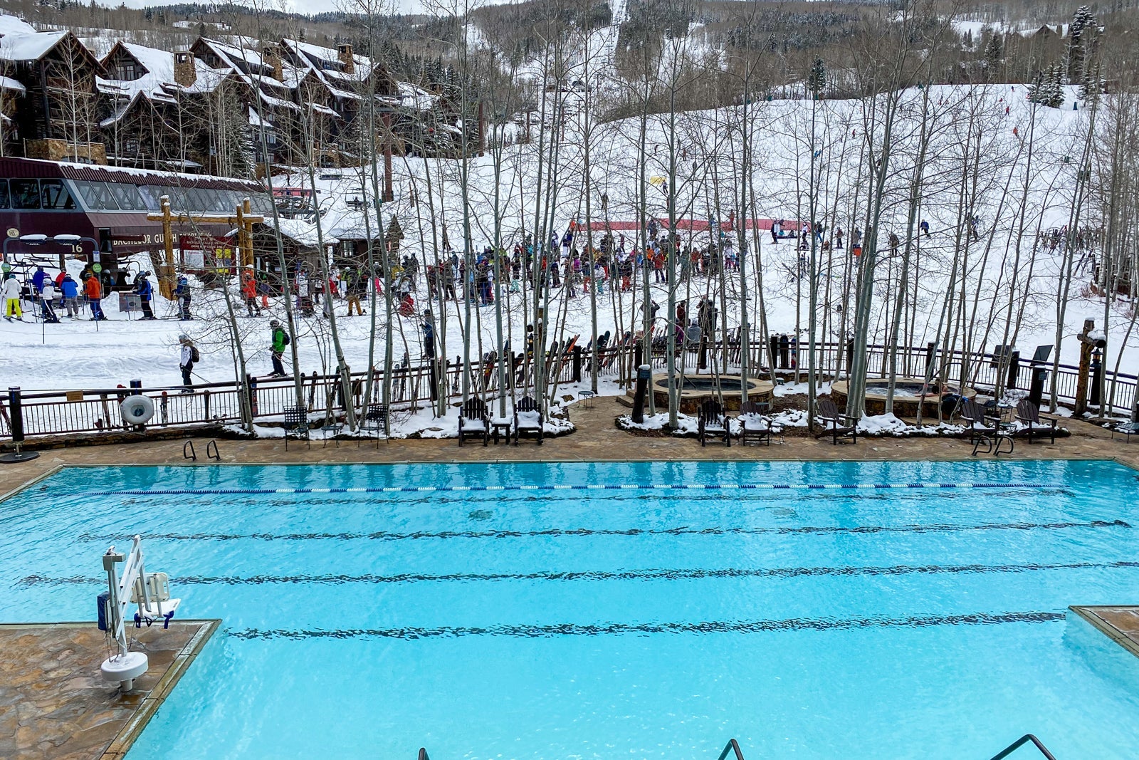 It is easy to snag an empty hot tub during the middle of the day. However, expect them to be pretty heavily used in the apres-ski hours. The pool and hot tubs also promptly close at 7 p.m., so there's not really a chance for an evening dip after the crowds clear out. Whether you dive in or dangle your feet, there's no question this area is a gem of the property.