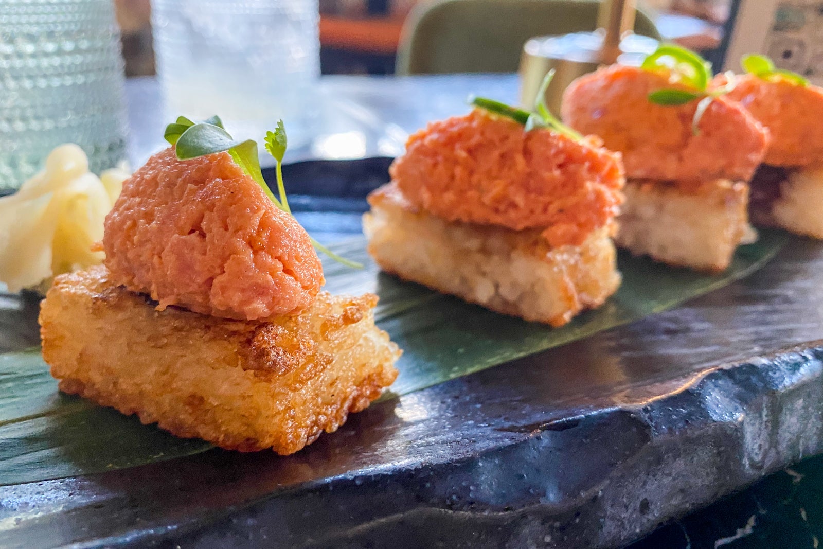 Sakaba has both indoor and open-air seating, but regardless of where you sit, you're in for a treat with the meal. Just know in advance this place is very expensive with portions that aren't especially large. This crispy rice with tuna appetizer ($32) was something I will crave forever; it was that good.