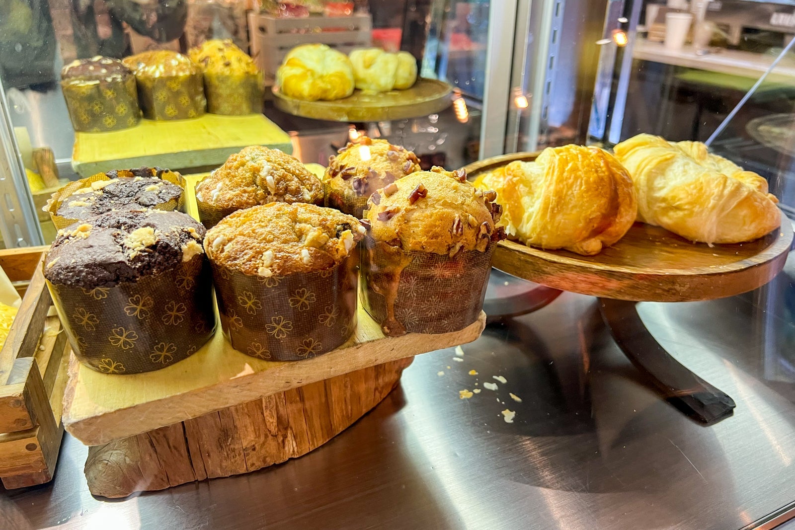 The continental breakfast in 2021 was $19 and came with delicious yogurt and berries, a chocolate-infused croissant, juice and coffee. We added some sides of bacon and sausage and made a pretty great breakfast for three out of those contents.
