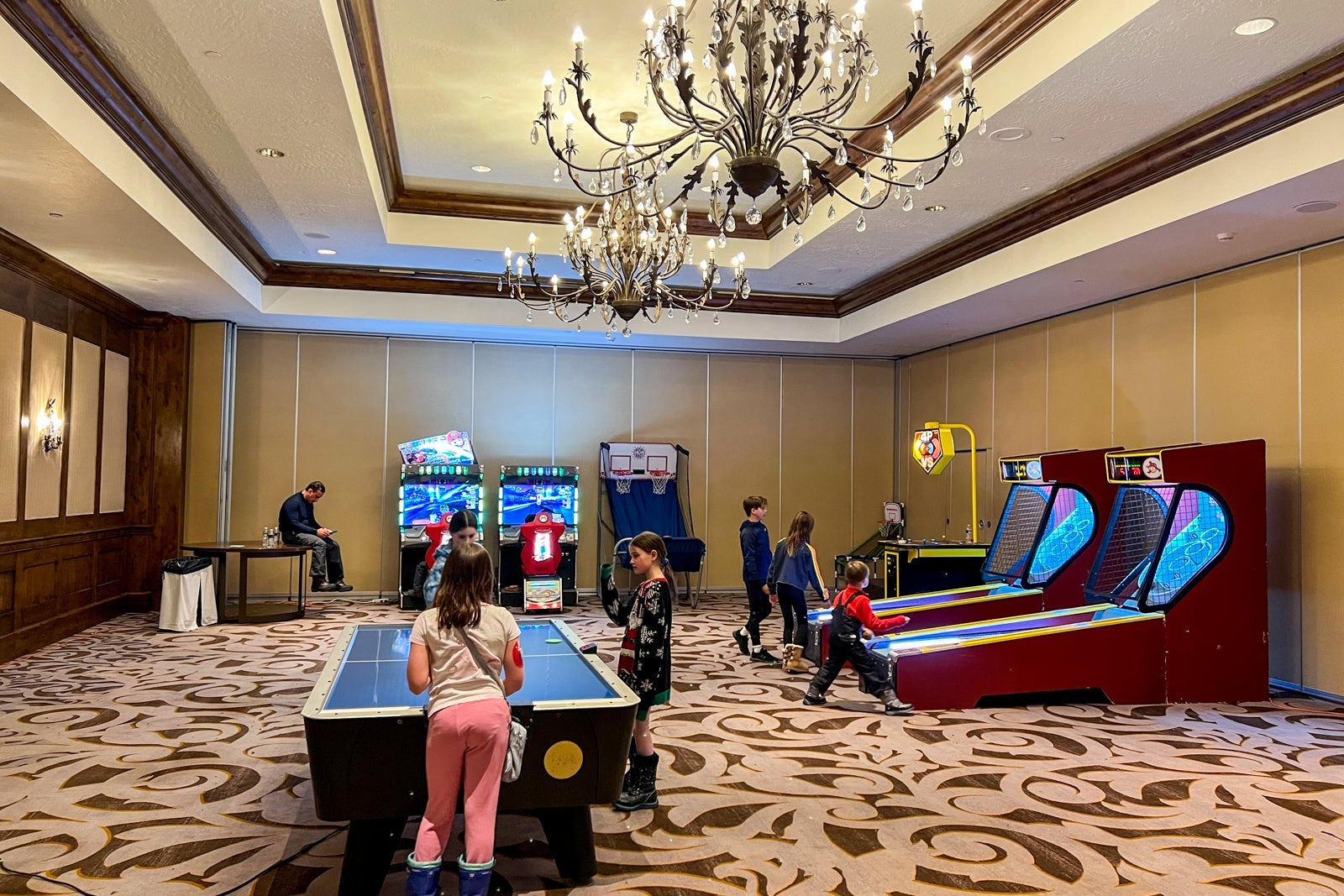 Later in the evening, there was cookie decorating, which was great considering it didn't cost anything extra. To cap off the evening, there was the arcade where the games are programmed to just let the kids play for no extra cost -- which they most certainly did.