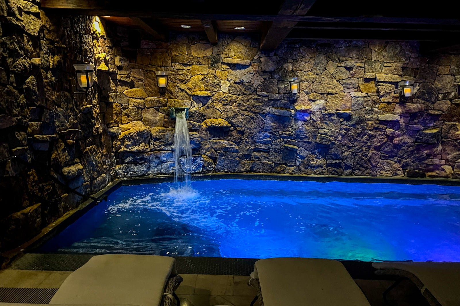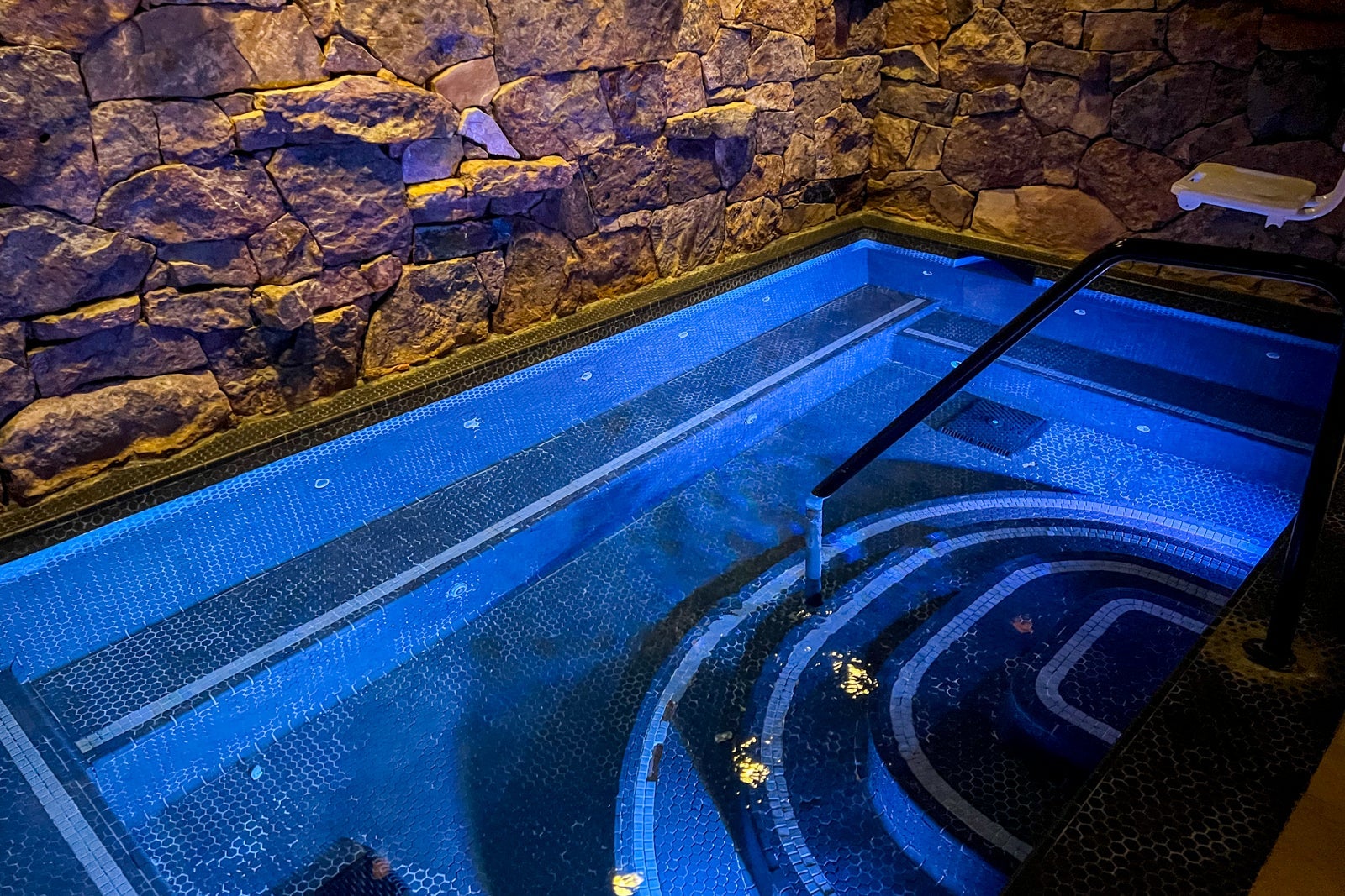 This time, I didn't budget for a treatment (they start at $205 for a 50-minute massage), but I was able to take a peek around the spa and things were looking much better than last time. The spa leans into its dark, cave-like environment with an enticing grotto pool.