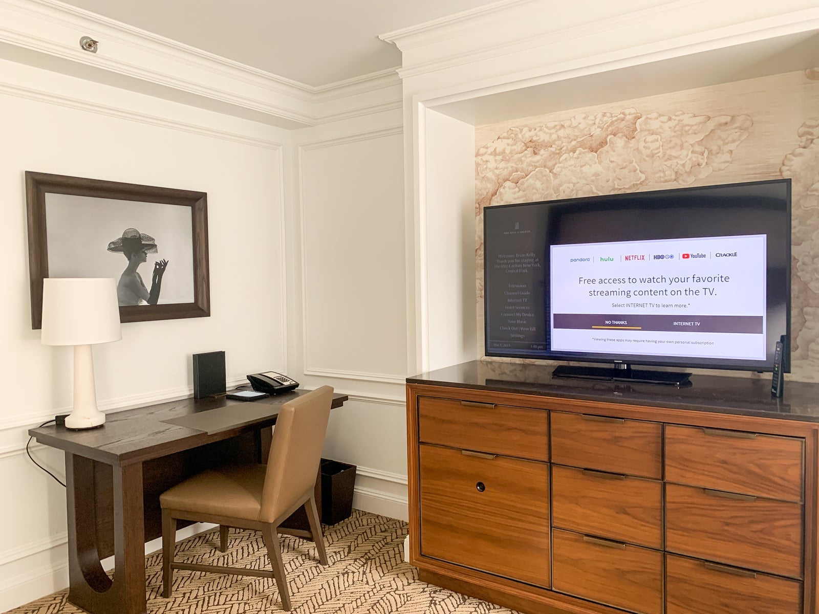 I was able to find light switches easily, and the room had other practical touches like a true desk for working and chair and a new smart TV -- perfect for watching Netflix as I would at home. The photograph hanging on the wall definitely felt like it belonged in an Upper East Side townhouse, and fit in perfectly with the rest of the decor.