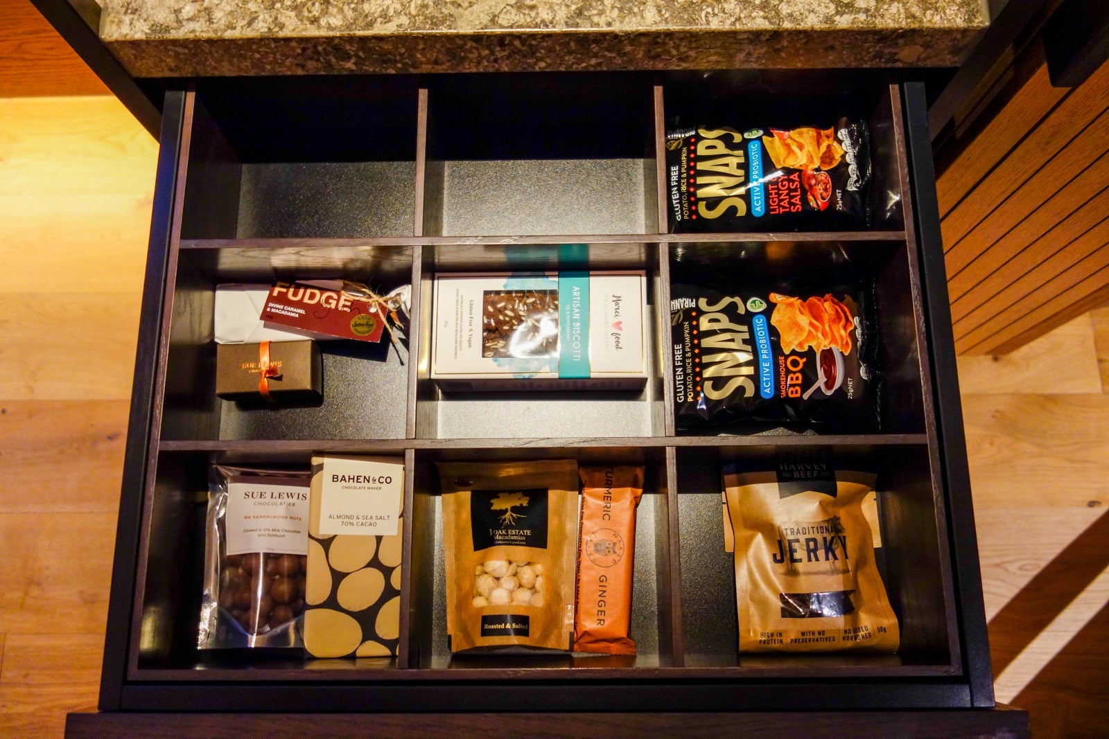 The minibar included a bunch of local snacks including nuts, jerky and fudge.