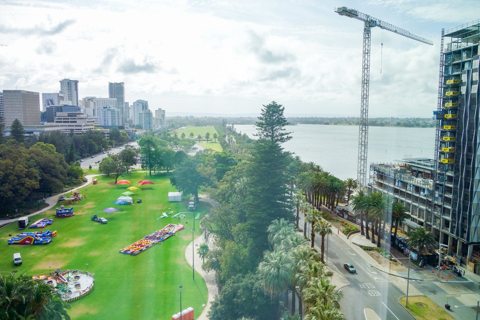 The hotel is the centerpiece of the new Elizabeth Quay development. It fronts the Swan River right in the heart of the central business district. The area contains a lot of new restaurants and bars and is adjacent to the Bell Tower and the quay where you catch the ferry to Rottnest Island. In short, it's an ideal spot whether you're in town for business or leisure, and you can walk to pretty much anywhere in the center of the city, including to the main train station.