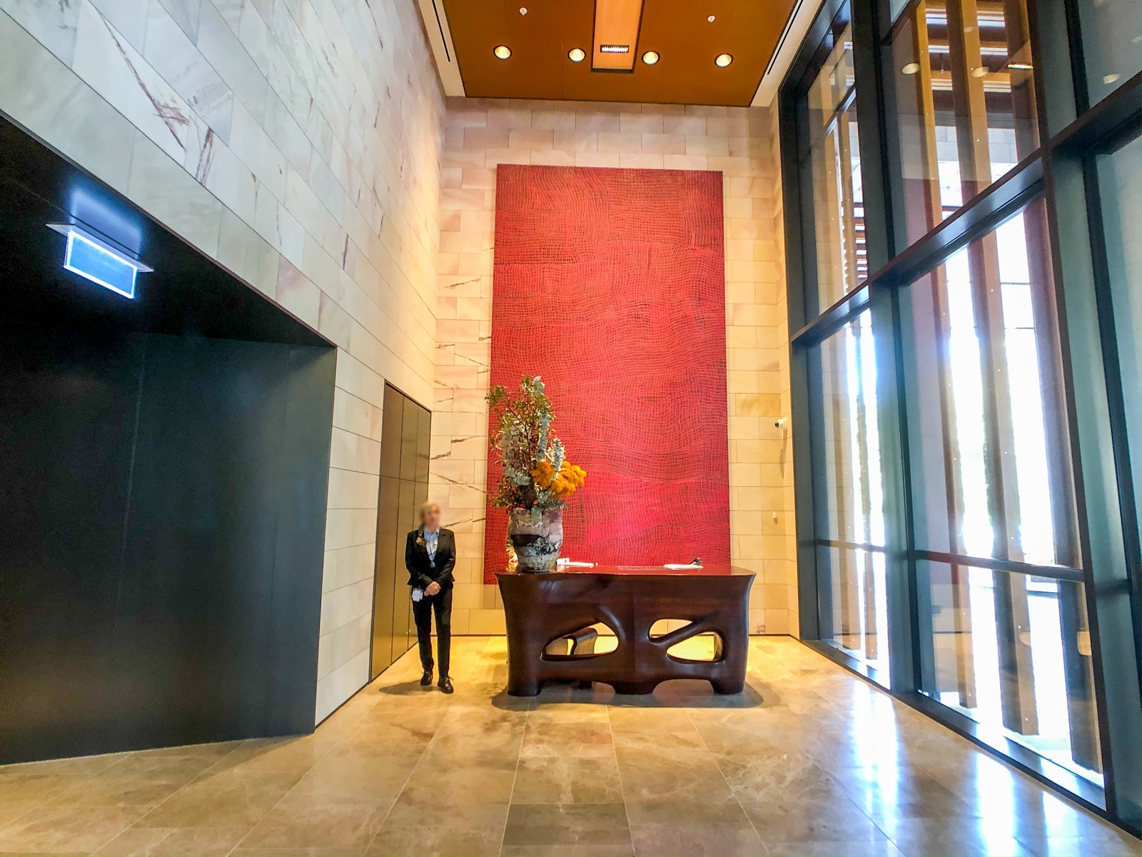 The lobby was not huge but still impressive, with high ceilings and a beautiful chandelier that was inspired by the Karijini Gorge waterfalls in Western Australia's Pilbara region.