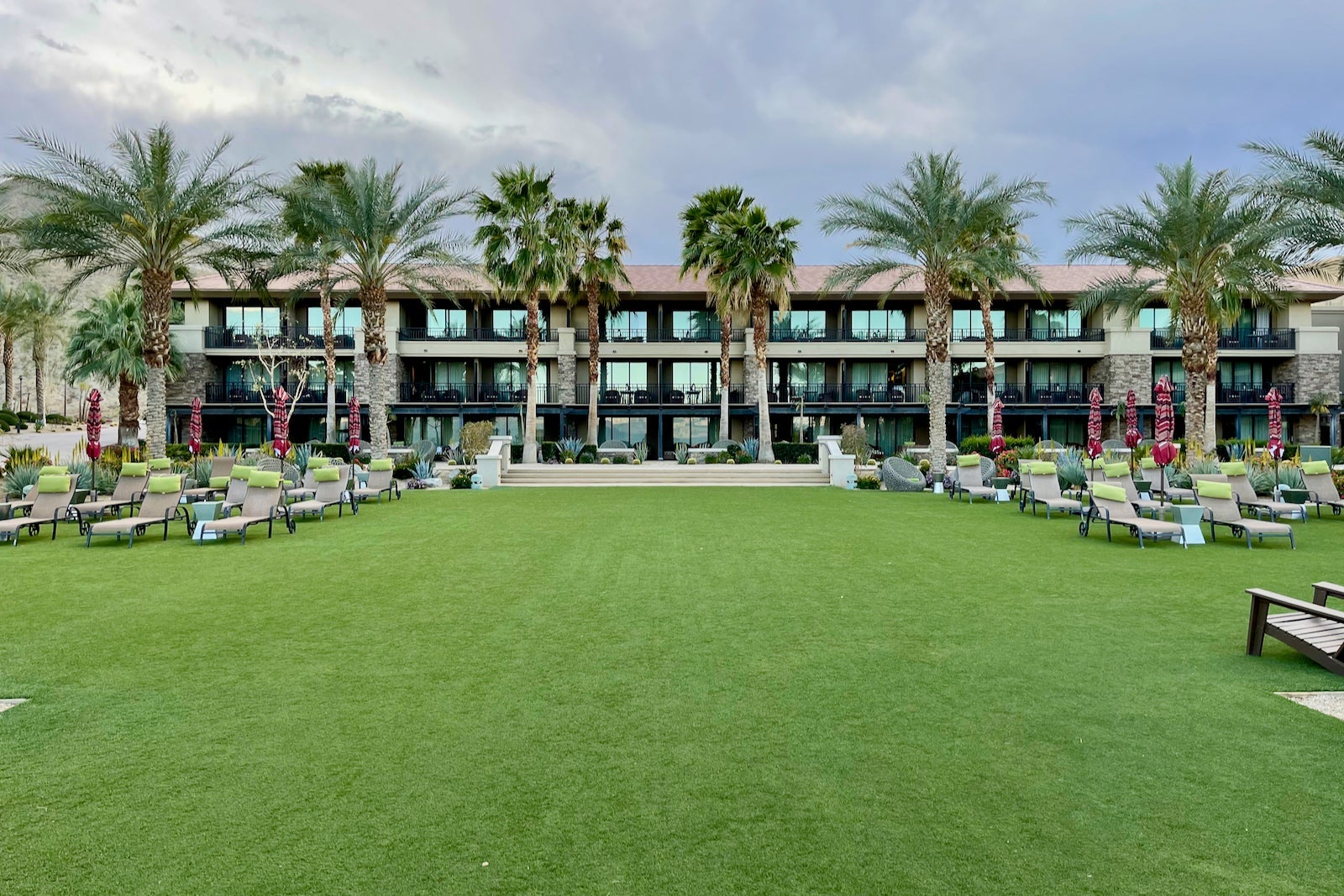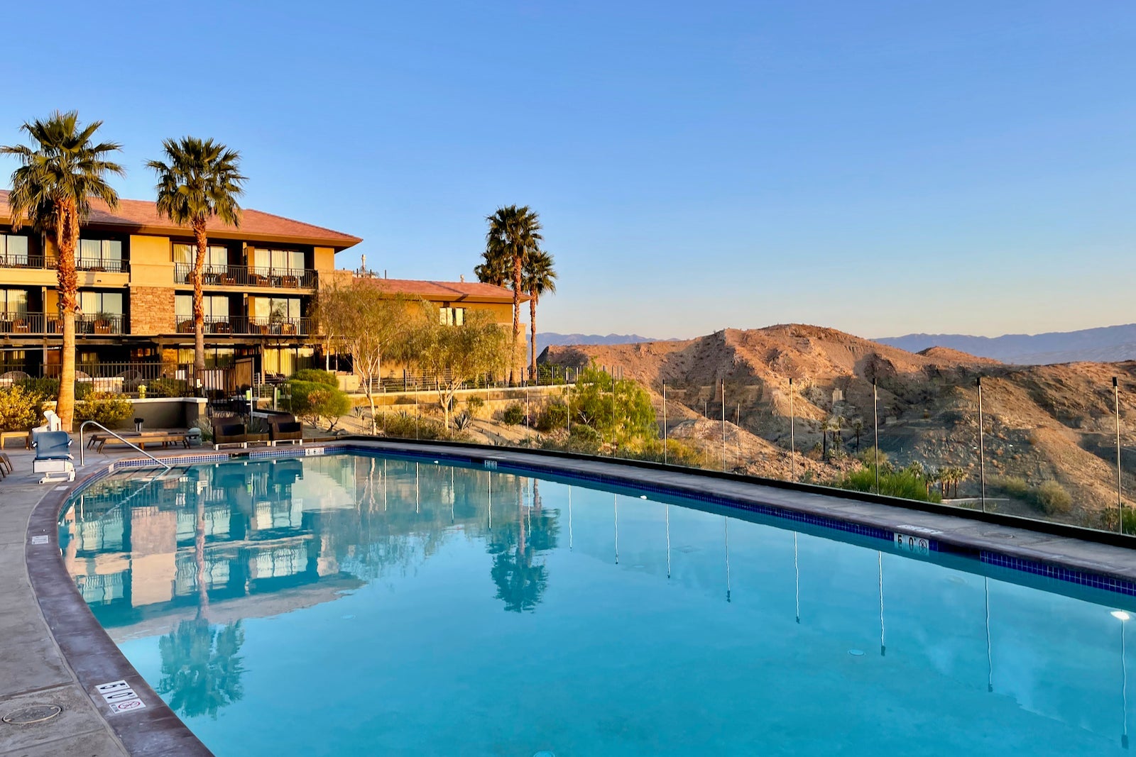 We stayed in a desert-view king-bedded room overlooking the adult pool, great lawn and Coachella Valley.