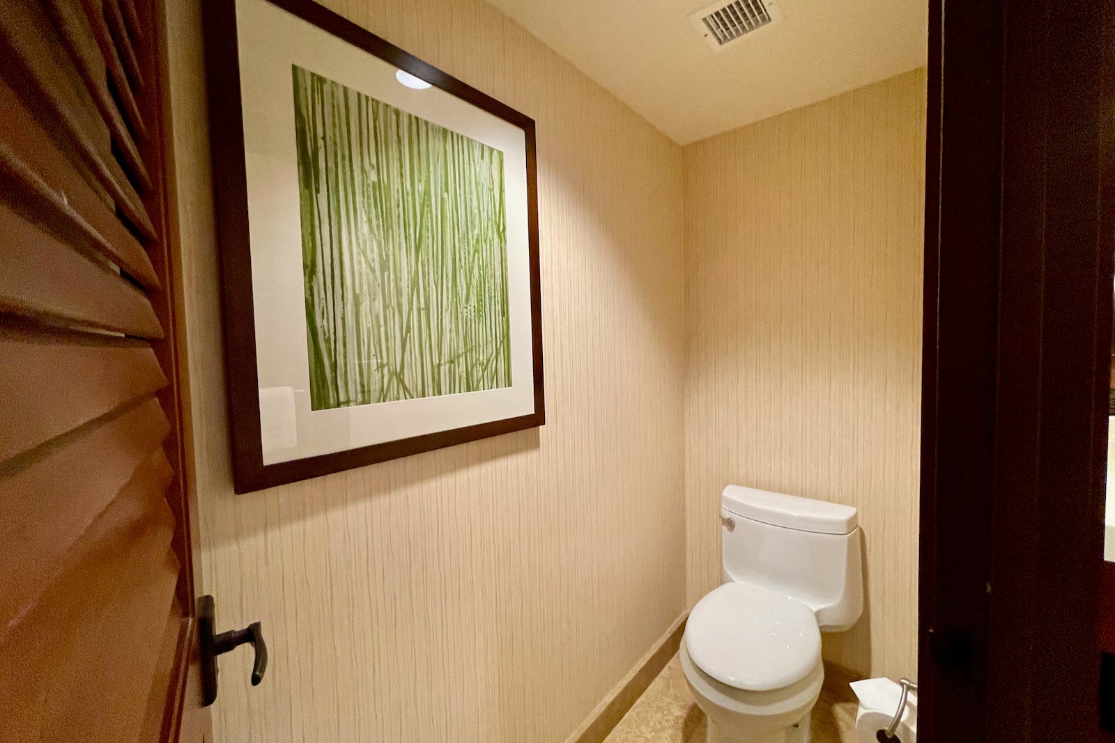 The bathroom was just as you entered. It featured a single vanity and private toilet, along with a walk-in shower and bathtub combo. Note that the water pressure wasn't great.