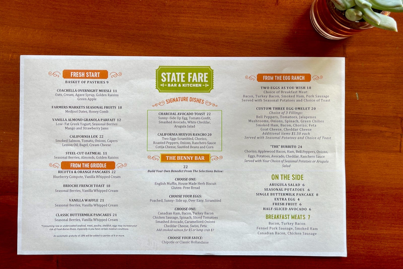 State Fare offers a California-themed seasonal menu. I didn't eat dinner at the resort (more on that below), but the breakfast selection was tasty.