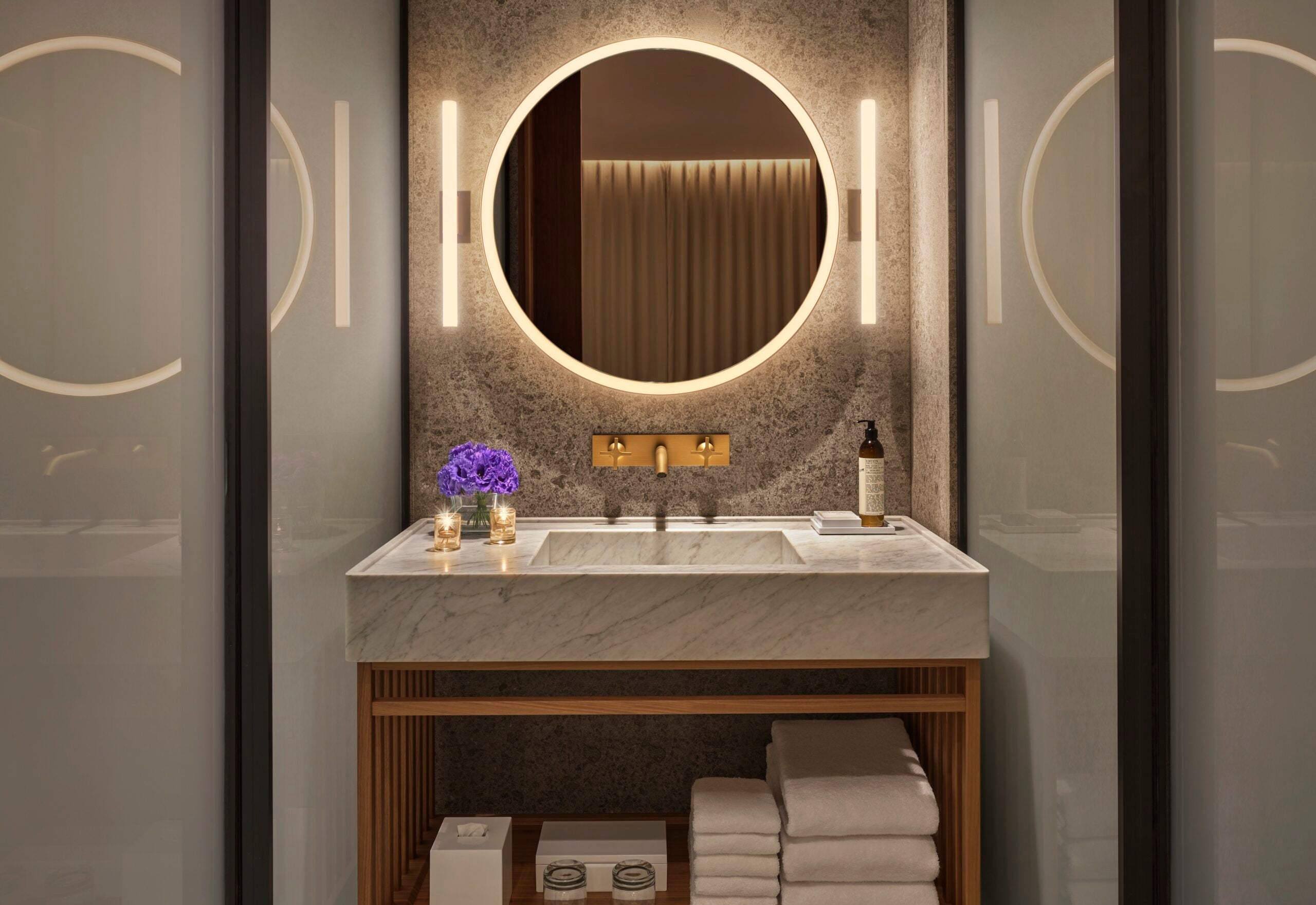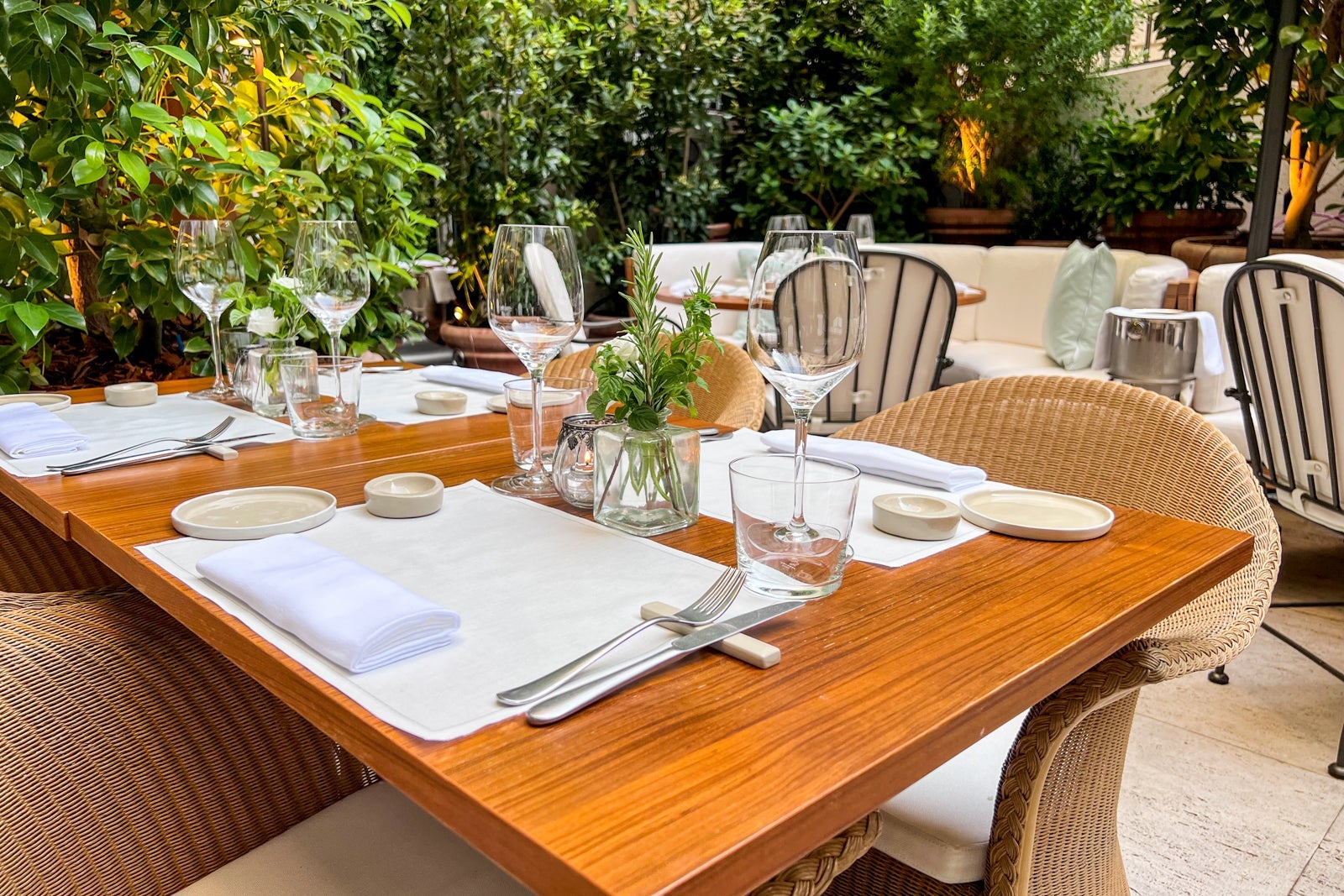 You access the hotel by walking down an elegant, marble central staircase into the courtyard (housing seating and tables for both the Italian-Mediterranean Anima restaurant as well as The Garden lounge). This libations-and-cuisine-forward introduction to the hotel before you set foot in the lobby sets the mood for the hotel: The room count might be low, but the restaurant and bar count is high.