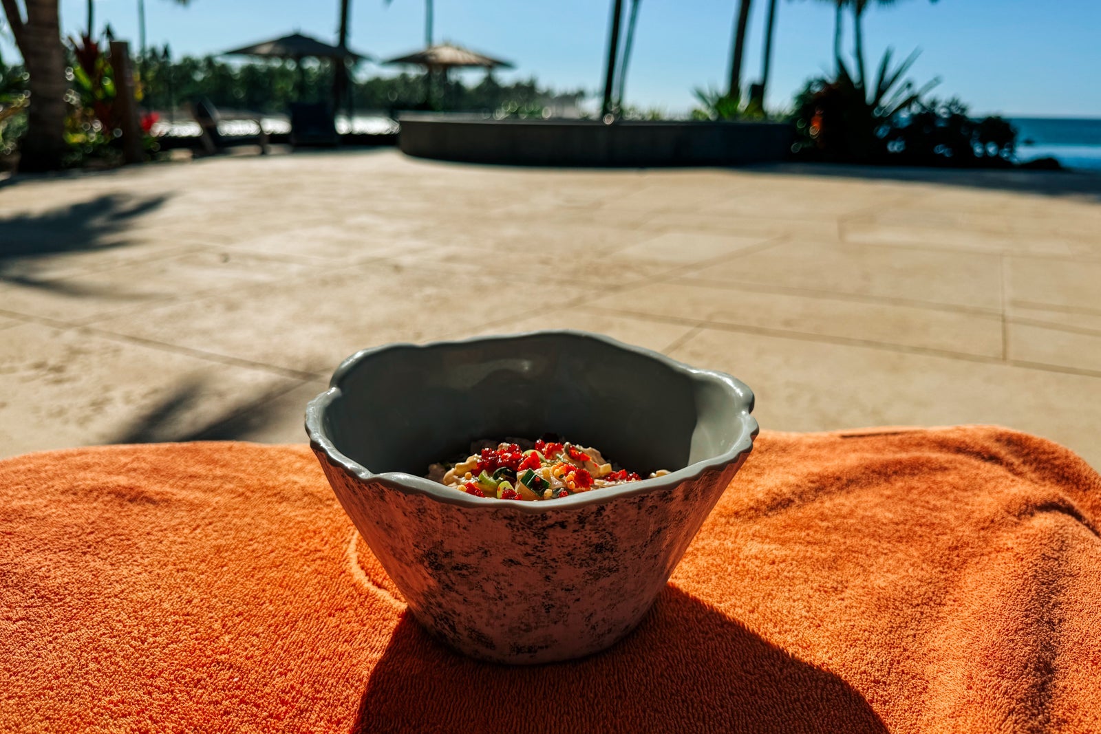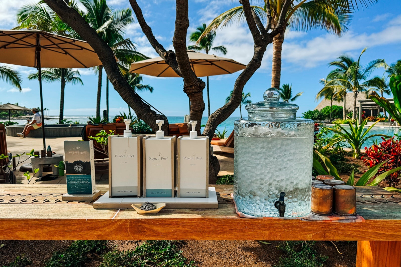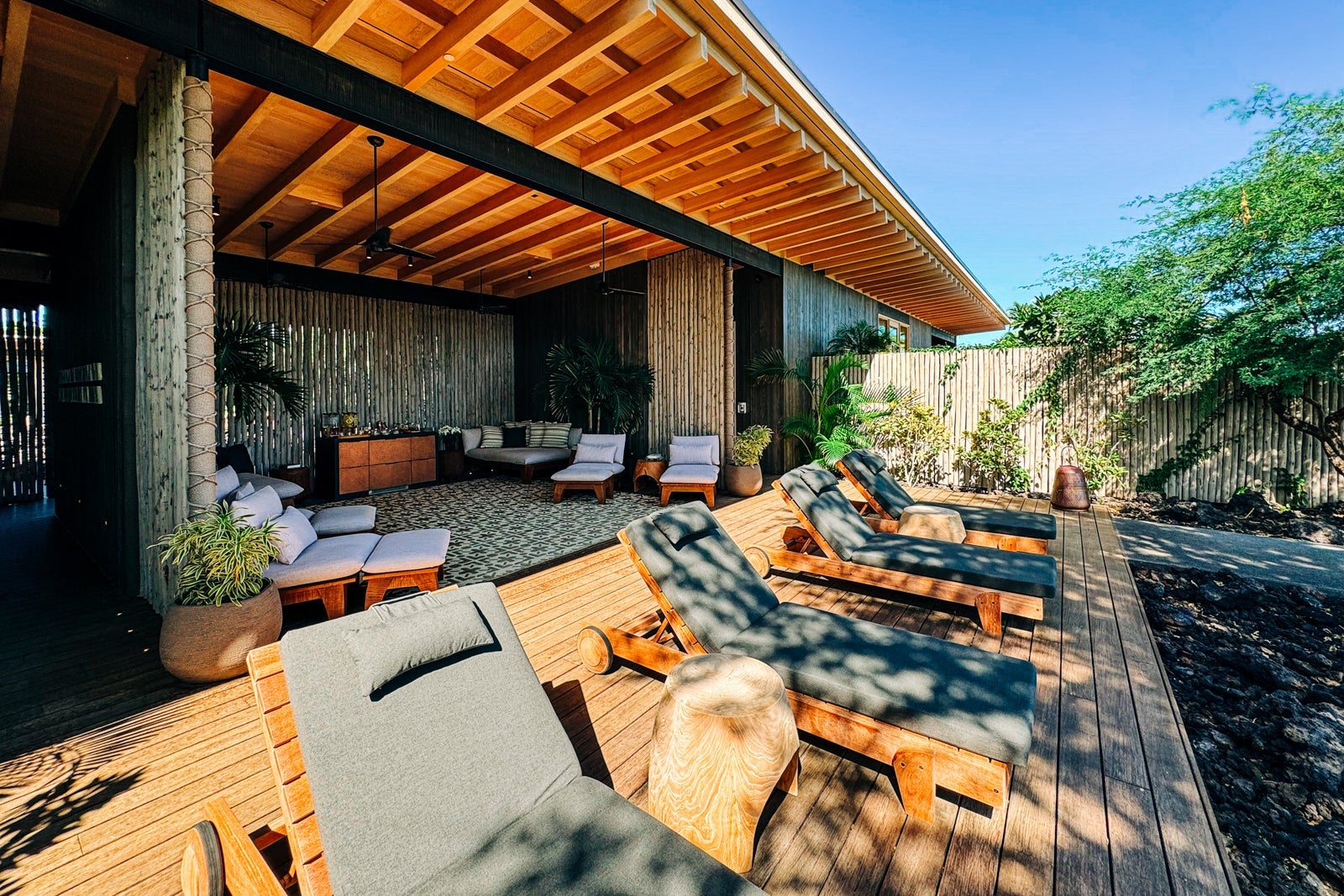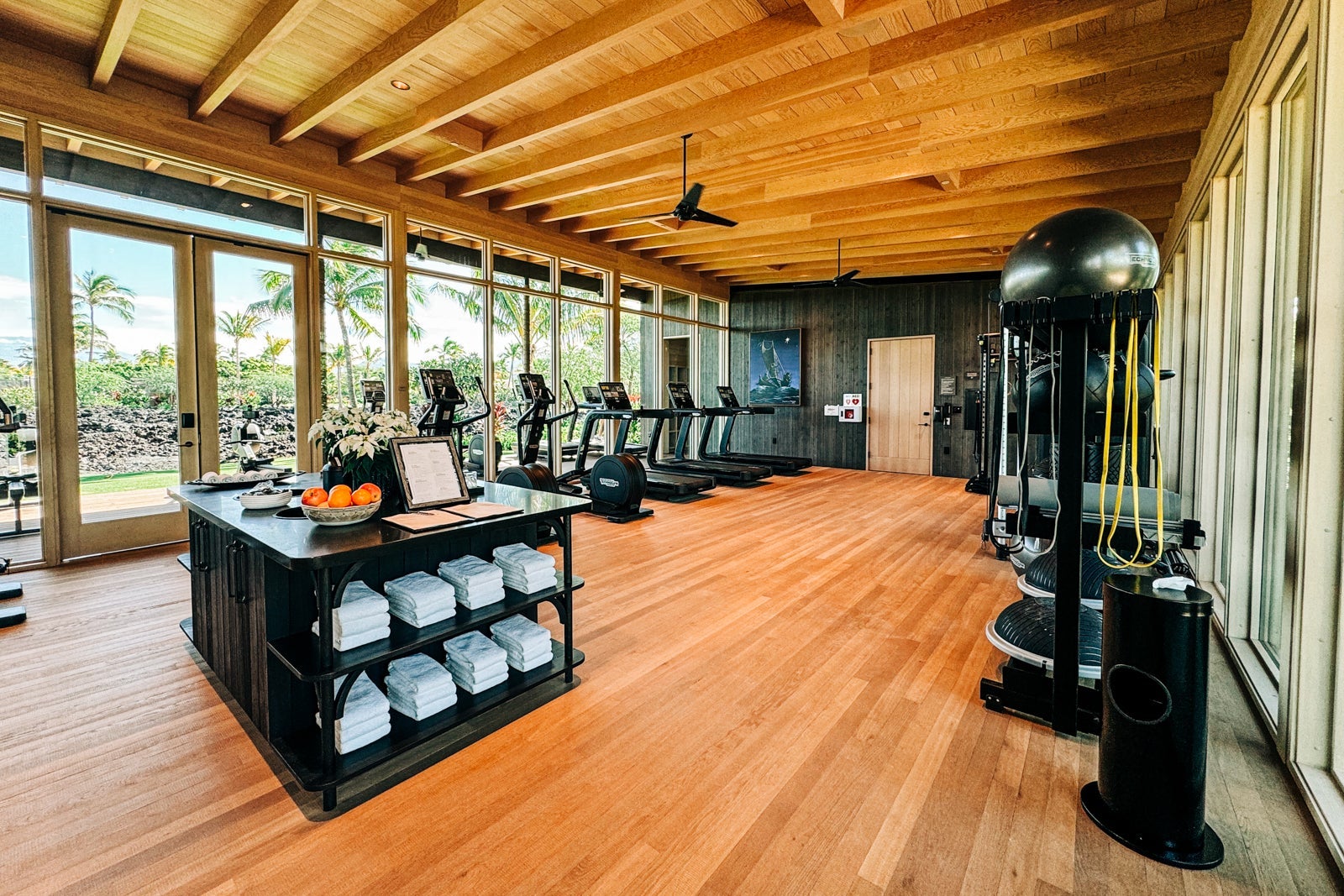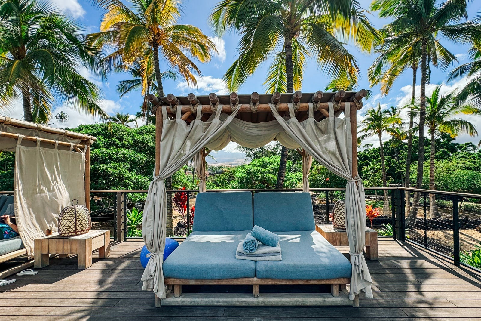 There's also a coed lounge area with soothing teas and healthy house-made snacks looking out toward Hualalai and a salon in the main building for any glow-ups you might need during your stay.