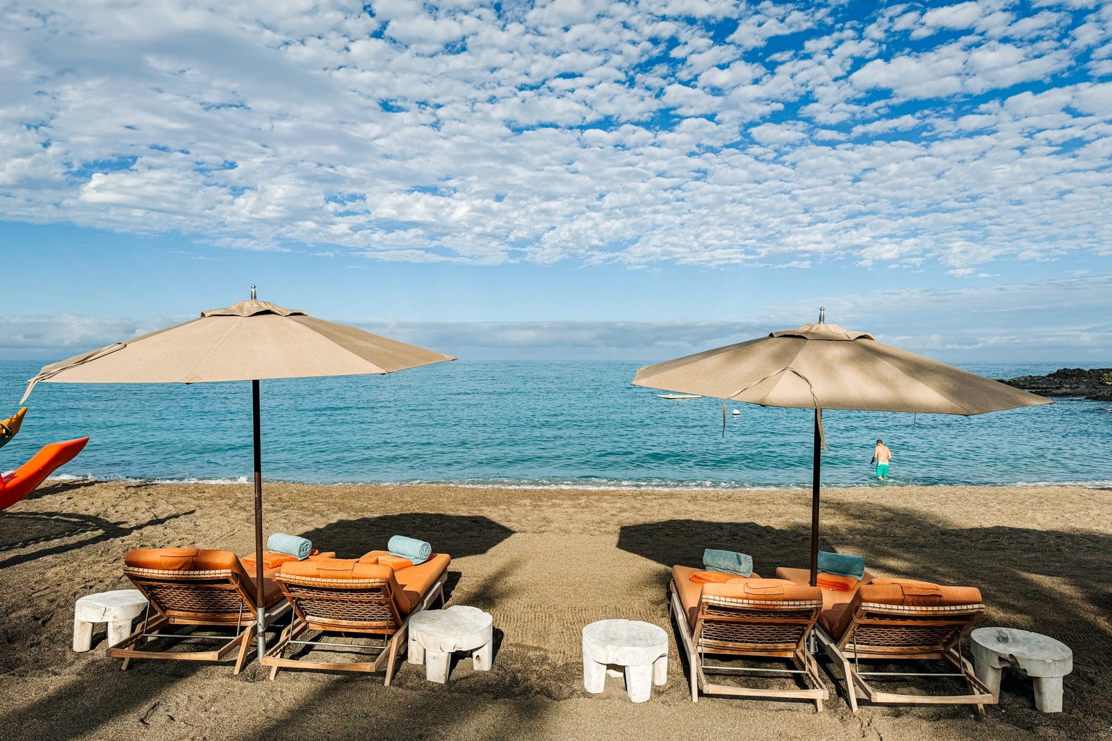 Like much of this stretch of the Island of Hawaii, there's not a huge swath of swimmable beach. However, Kona Village does have both an off-the-beaten-path black-sand beach between some of its oceanfront hales that you can swim or snorkel at (along with the public) and a little spit of sand in front of Moana and the water activities center that's good for a paddle in the gentle surf.