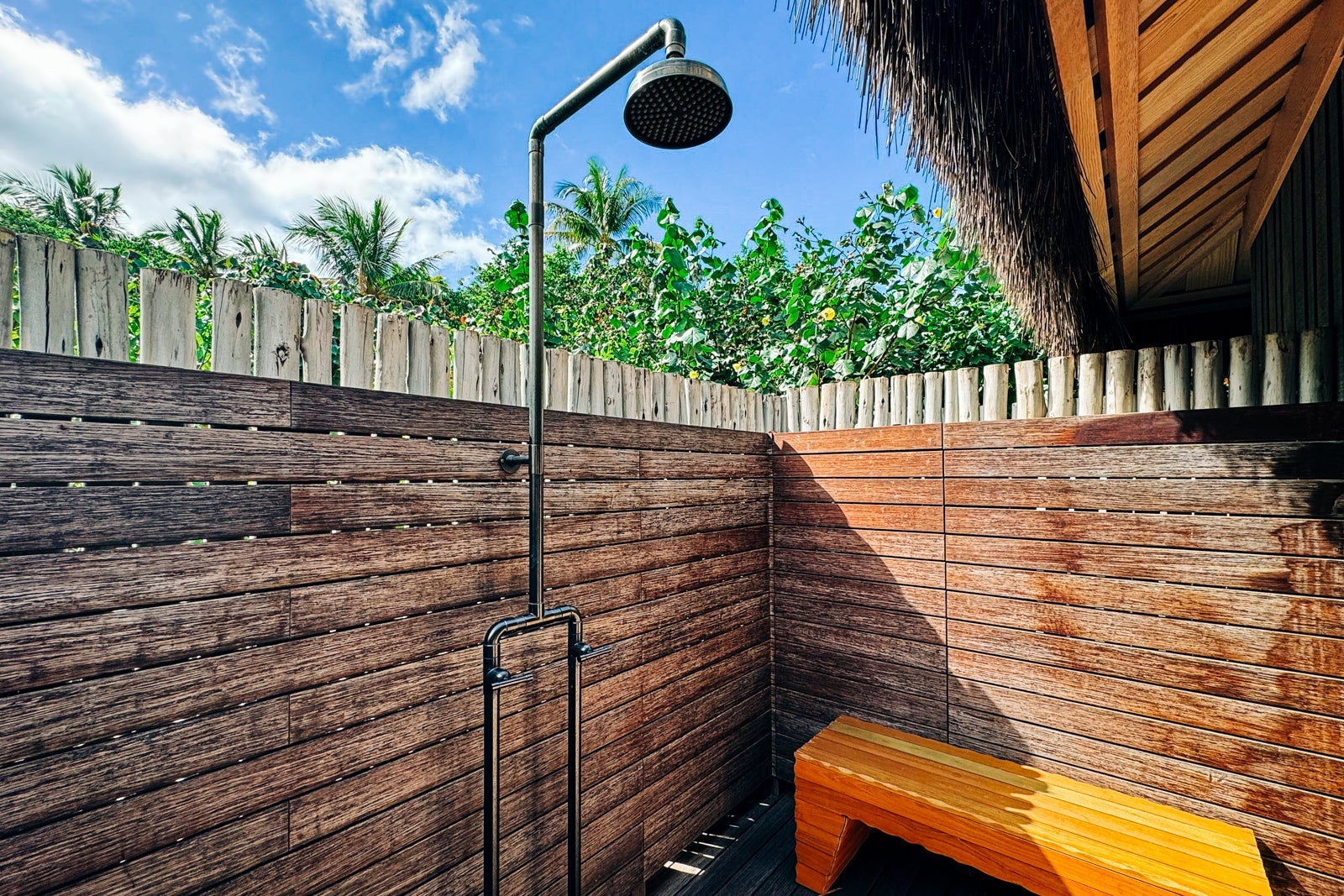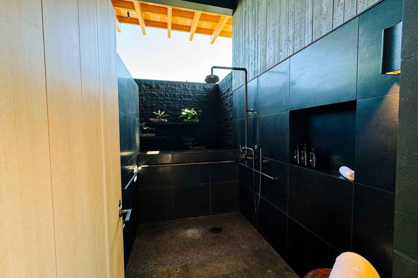 The most inviting part, however, had to be the outdoor shower, just beckoning guests to luxuriate under its steady stream as birds and butterflies flitted overhead in the afternoon sun.