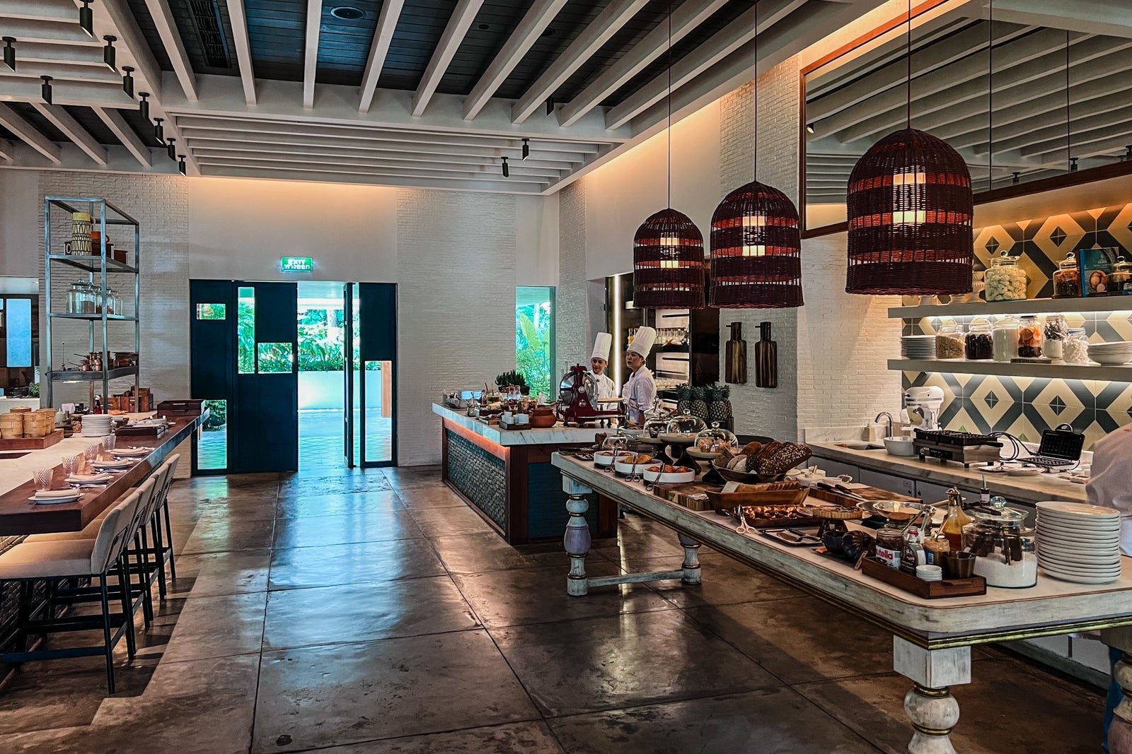 Breakfast was included in my stay and included a mix of a buffet (featuring Western-style fare like crepes and customizable Greek yogurt bowls) as well as more international a la carte menu items like Phuket dumplings, crab omelets and turmeric elixir shots.