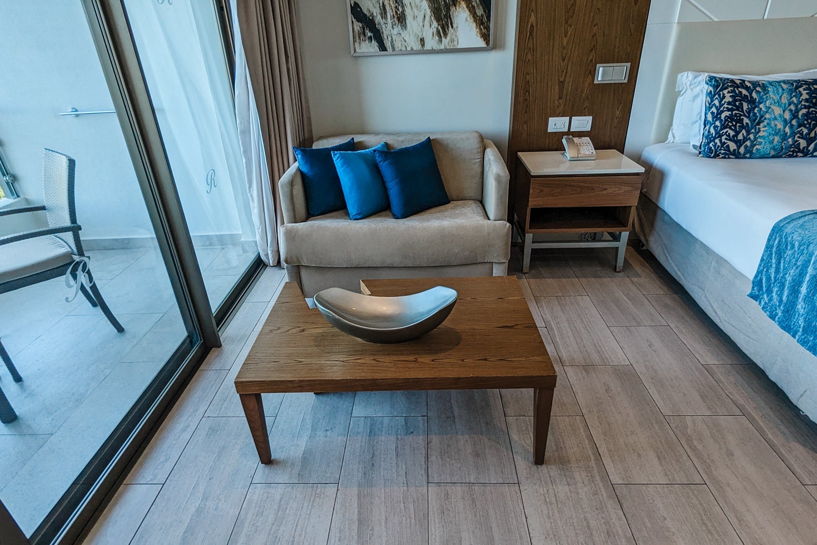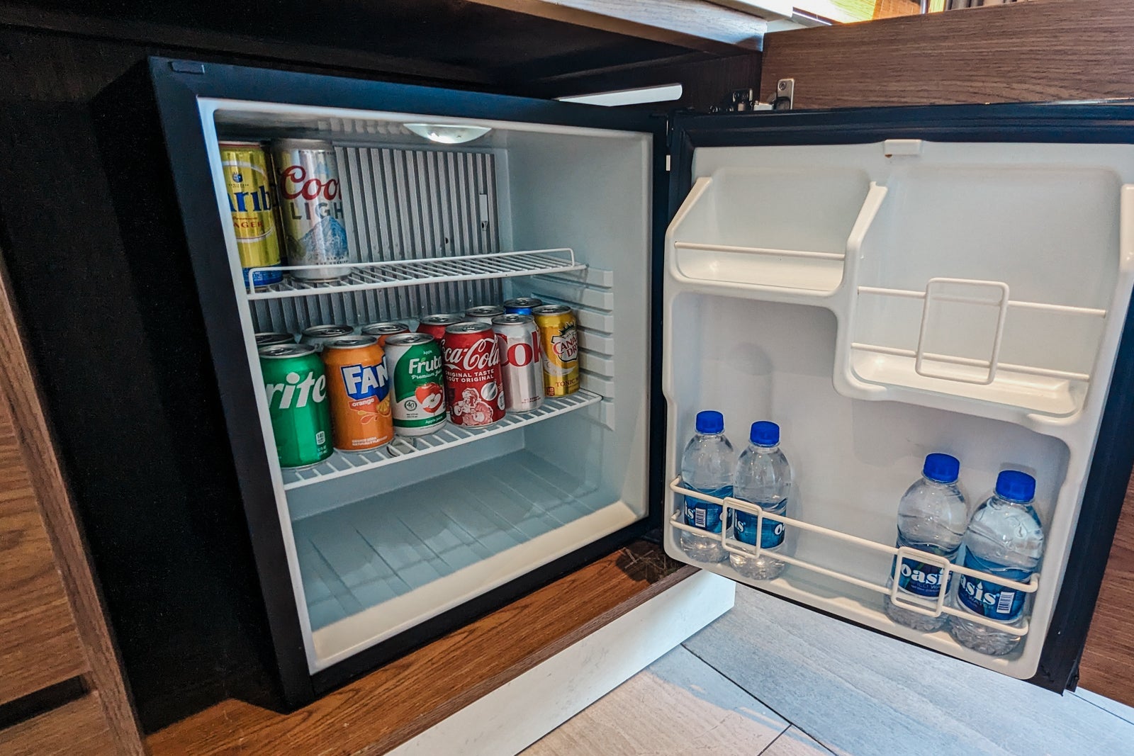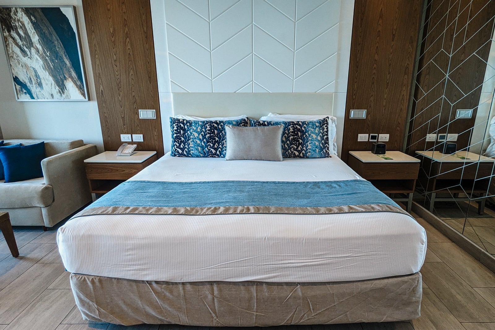 The design style was neutral and wasn't likely to win any cutting-edge design awards, but it provided a few pleasant pops of colors and nods to the local environment. Being an all-inclusive property, the minibar included local beer, soft drinks, water, chips, chocolate and a Diamond Club welcome gift of a bottle of sparkling wine and fresh fruit.