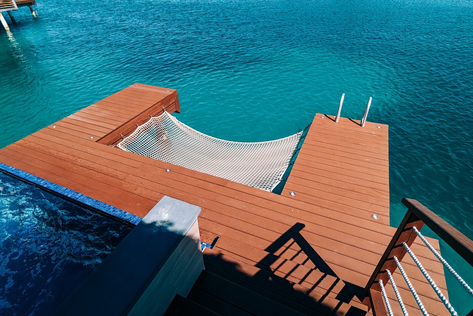My favorite part of the overwater bungalows was the private deck with a plunge pool, sun loungers and a hammock to take in the Caribbean sunshine.
