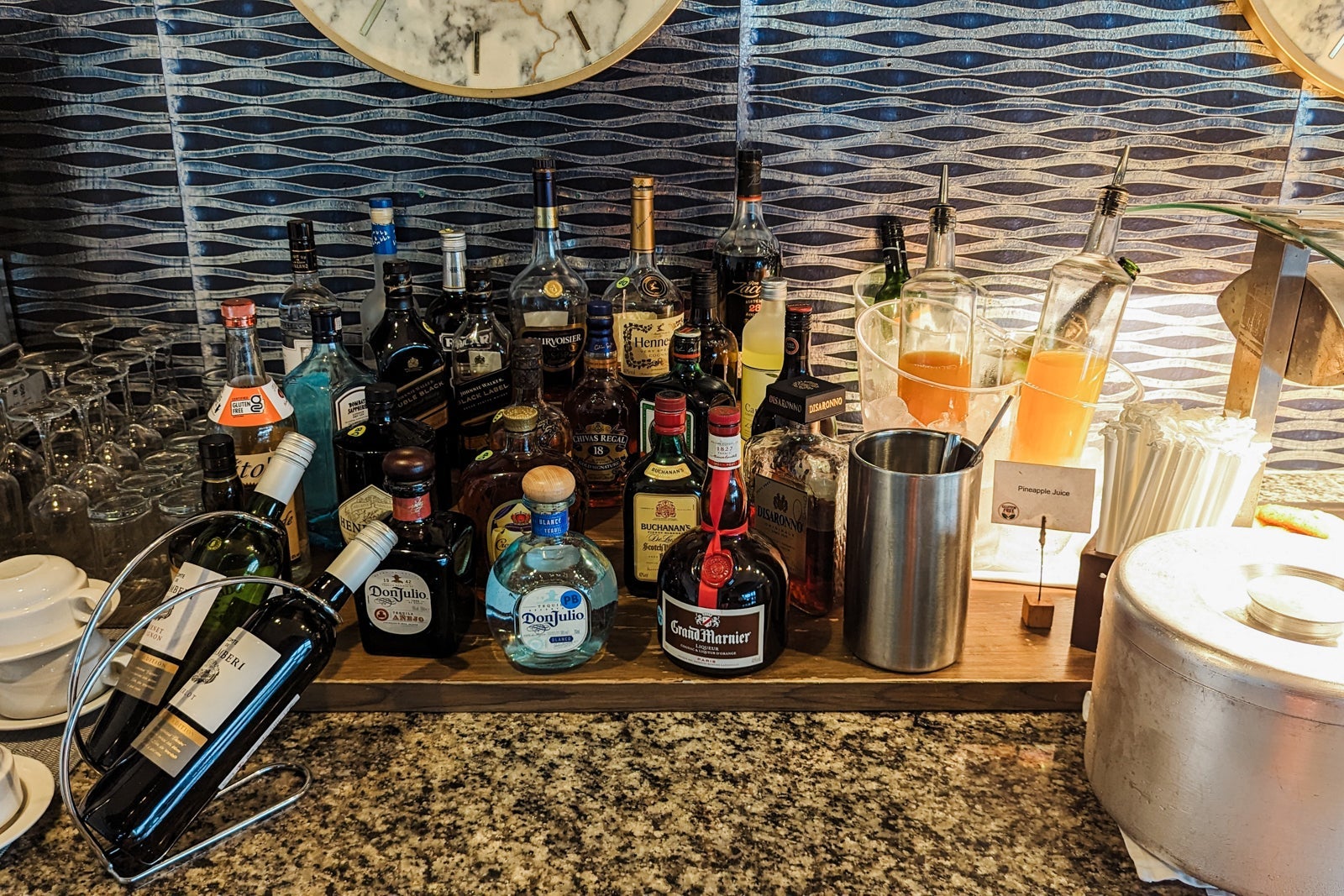 Rather than check in at the main reception area, I was taken immediately by golf buggy to the Diamond Club Lounge, which is much closer to the guestrooms for check-in. This space has additional snacks available all day for Diamond Club guests and more premium spirits than at the regular bars, including Don Julio tequila, Grey Goose vodka, Hendricks gin and Hennessy cognac.