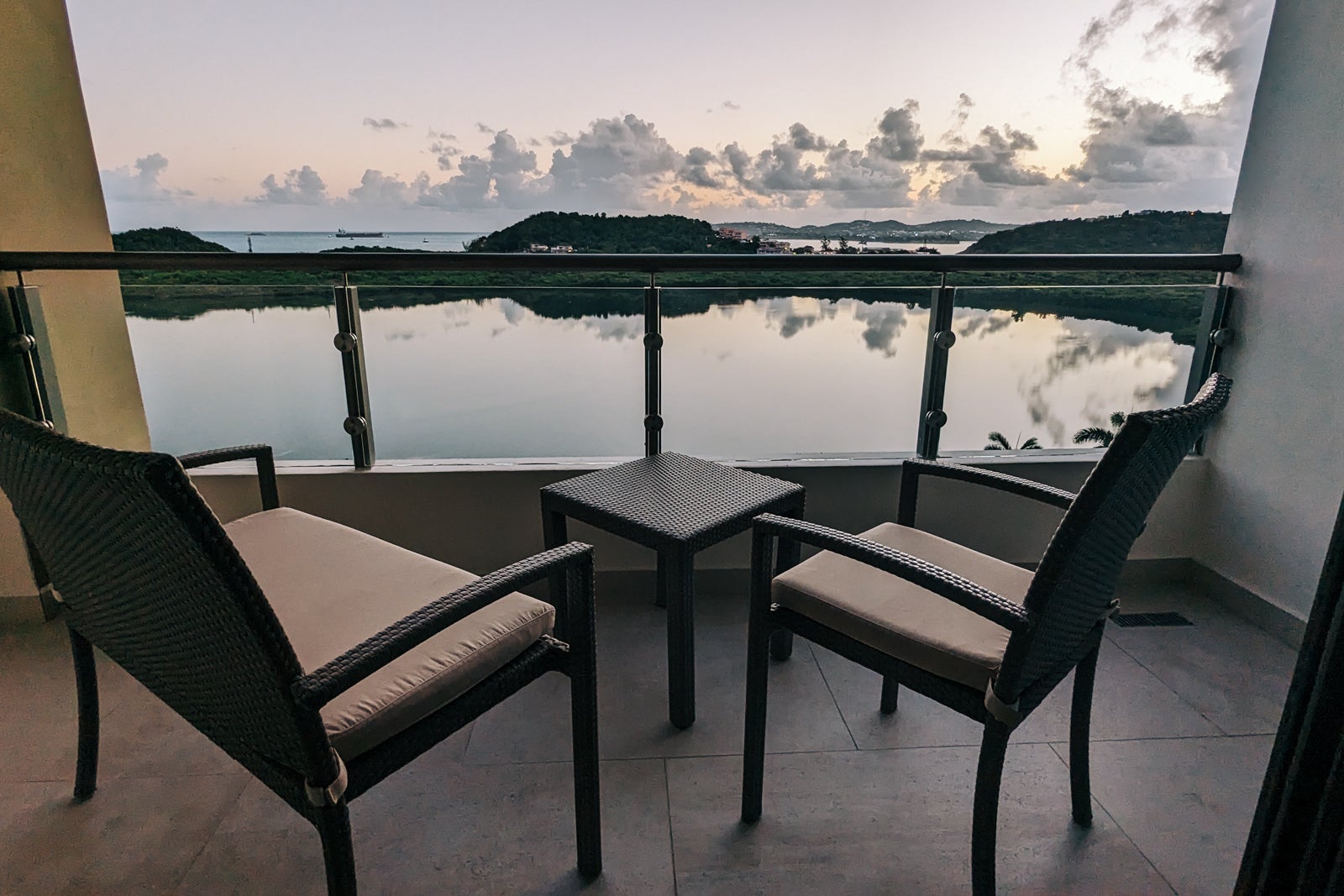 I was assigned a spacious 452 square foot lagoon view suite on the top floor for my two-night stay, and it had everything I needed, including a comfortable king-size bed, desk with chair, small sofa and large flat-screen television. Slippers and fluffy bathrobes in the closet added a luxurious touch.
