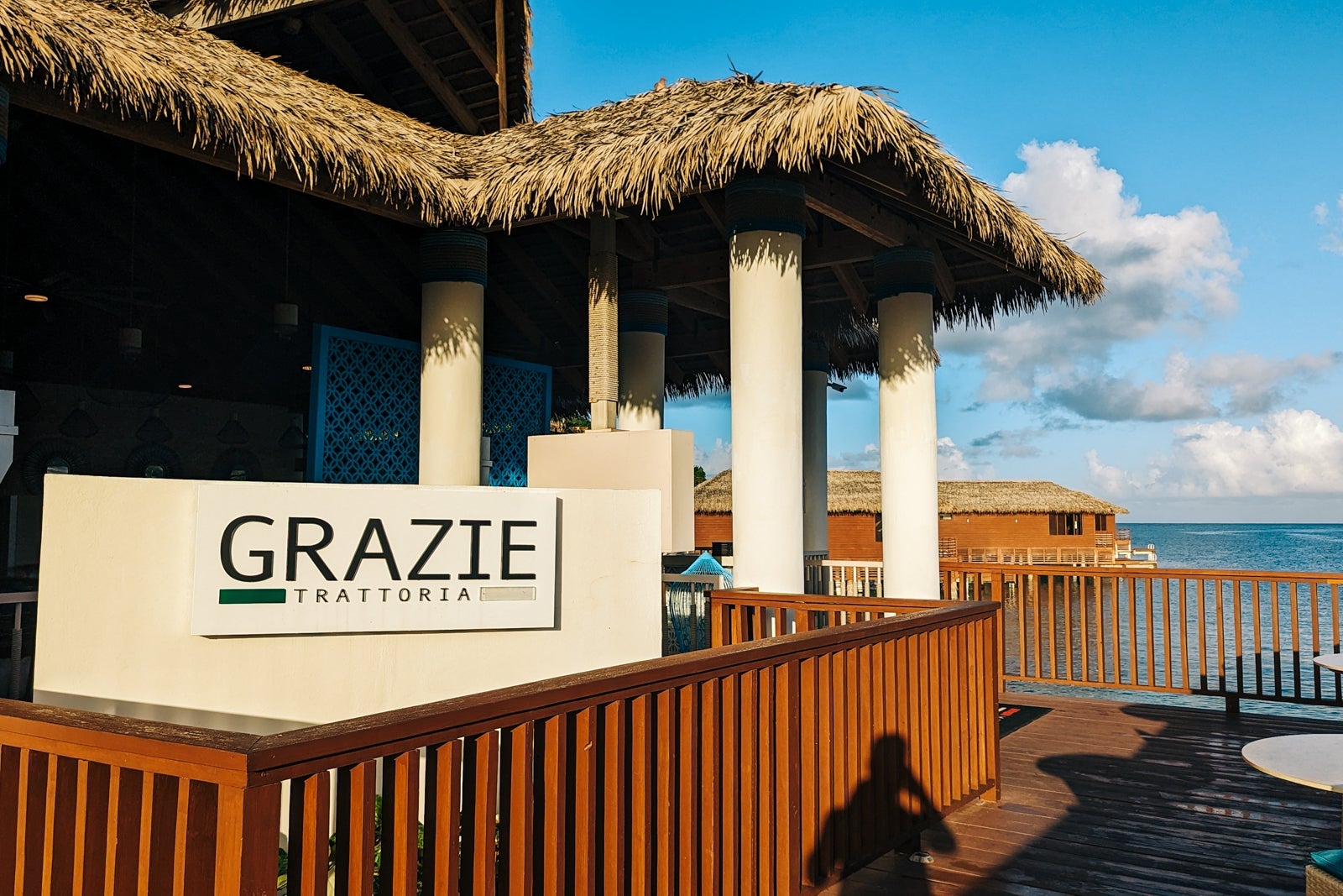 Another familiar sight from my Punta Cana stay was the Italian restaurant Grazie Trattoria. I wasn't wowed by dinner there previously, so decided to take advantage of the Diamond Club perk of eating breakfast in this beautiful setting overlooking the water and the bungalows.