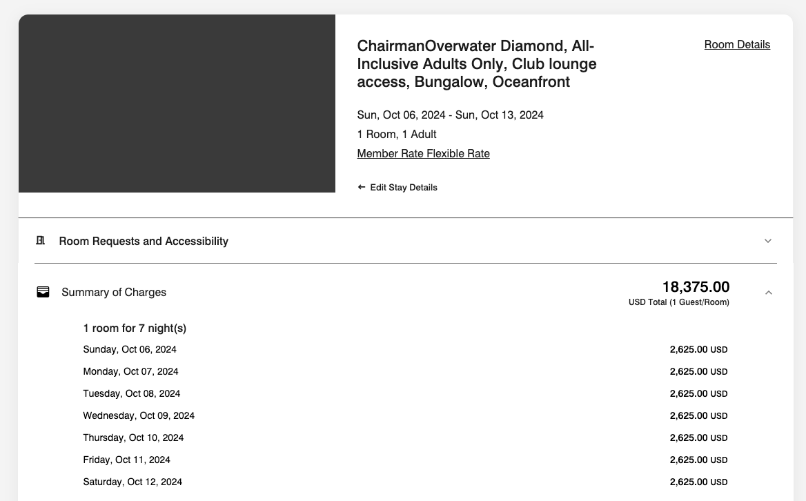 Diamond Club VIP access can be added for around $150 per room per night, depending on the date.