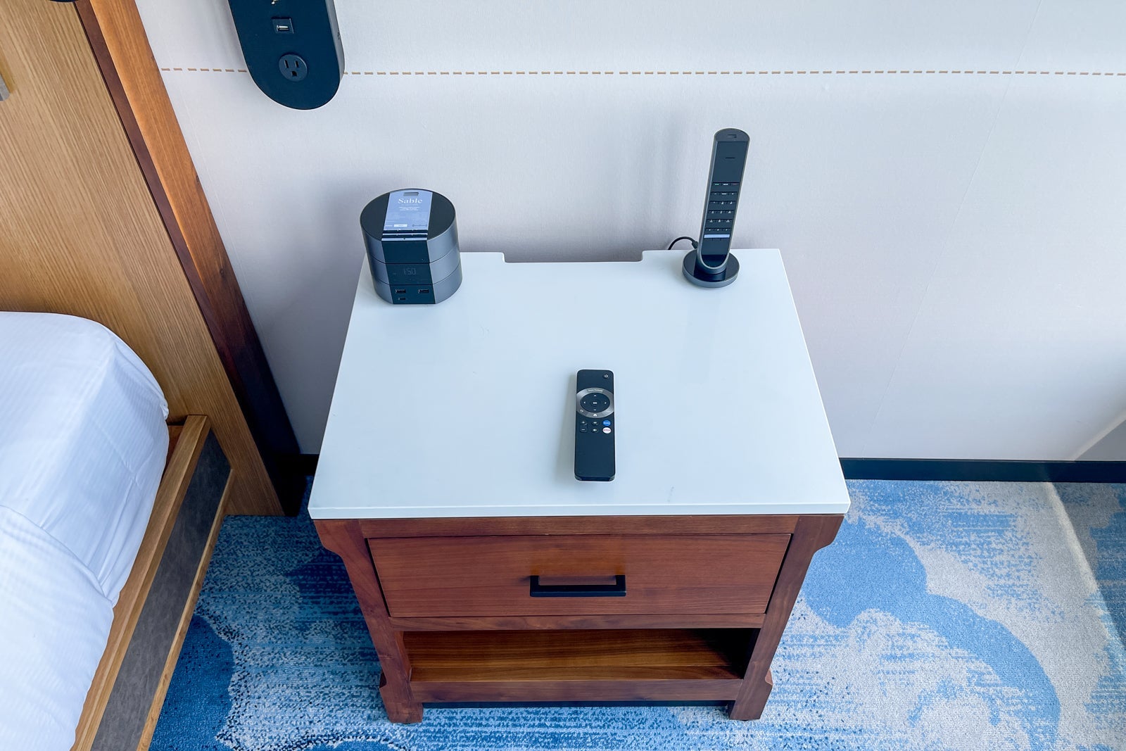 There were nightstands on both sides of the bed which had reading lights and USB ports. You'll also find an alarm clock with a wireless phone charger, which could come in handy if you have a newer smartphone and forget your phone charger.