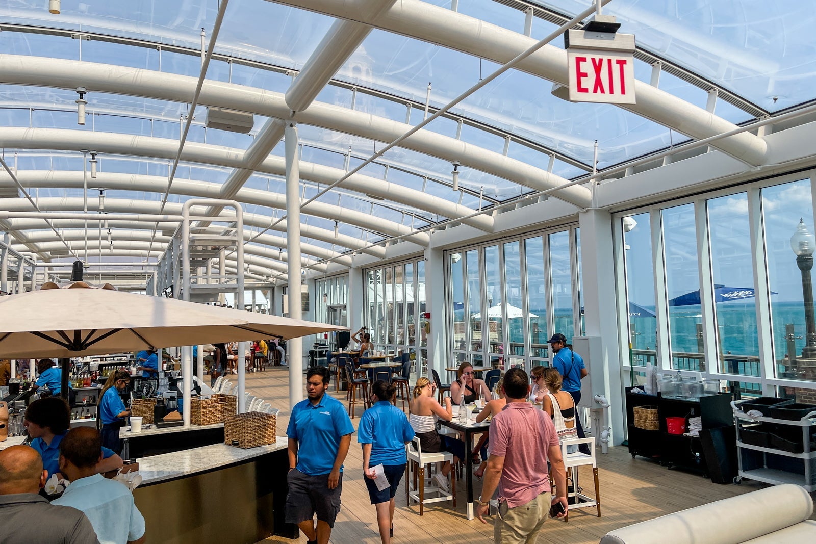 We had a reservation for dinner at Offshore later in the day, but left before we were seated. There were long lines and very weak air conditioning in the indoor area. It felt like a greenhouse because of its transparent roof, and the staff didn't provide any updates on when we would be seated – despite having shown up on time for our reservation.