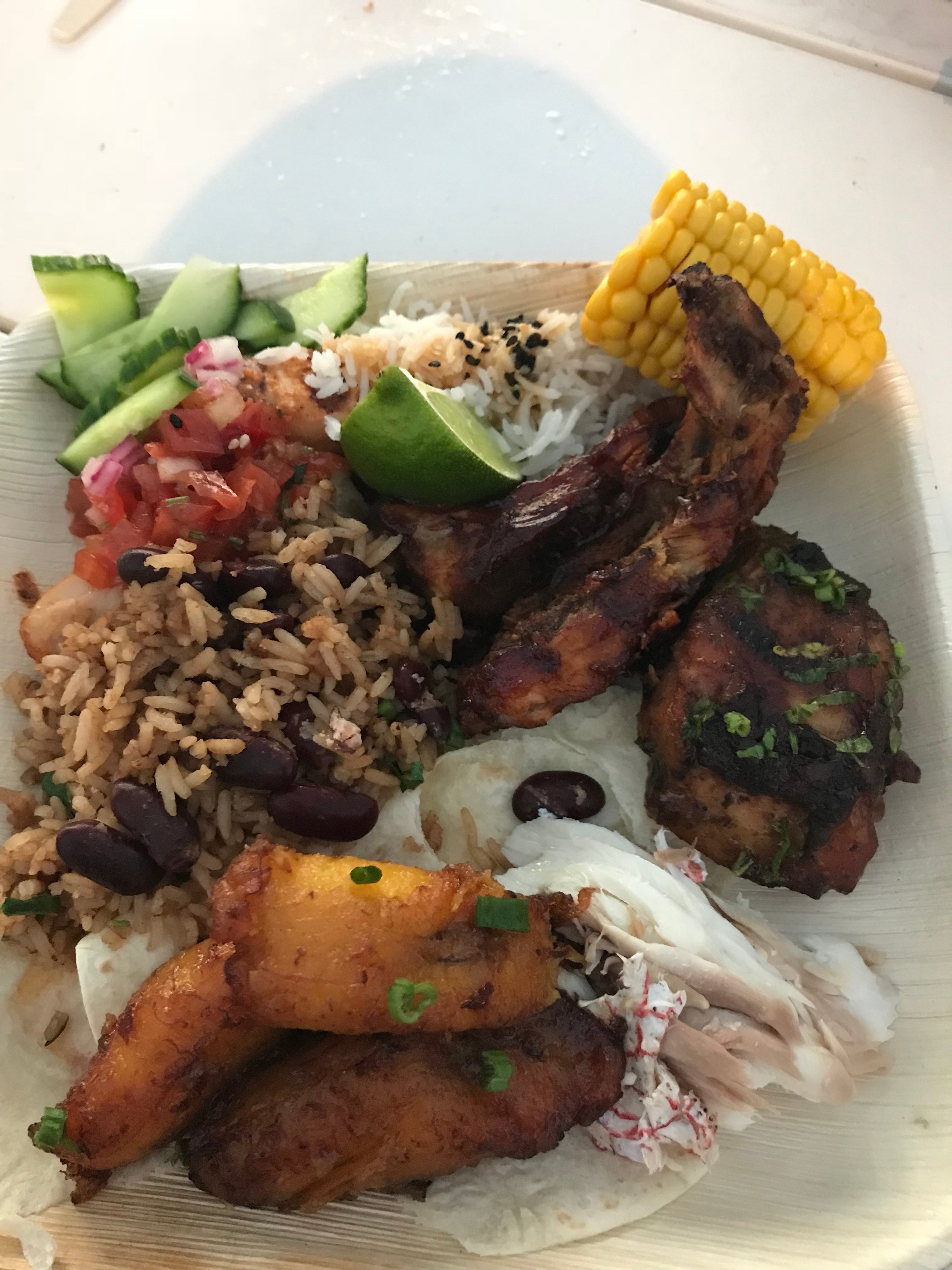 I loved the beachside setting at sunset and many of the menu items were big hits with my crew. We really enjoyed the fish, plantains, red beans, rice, and ribs.