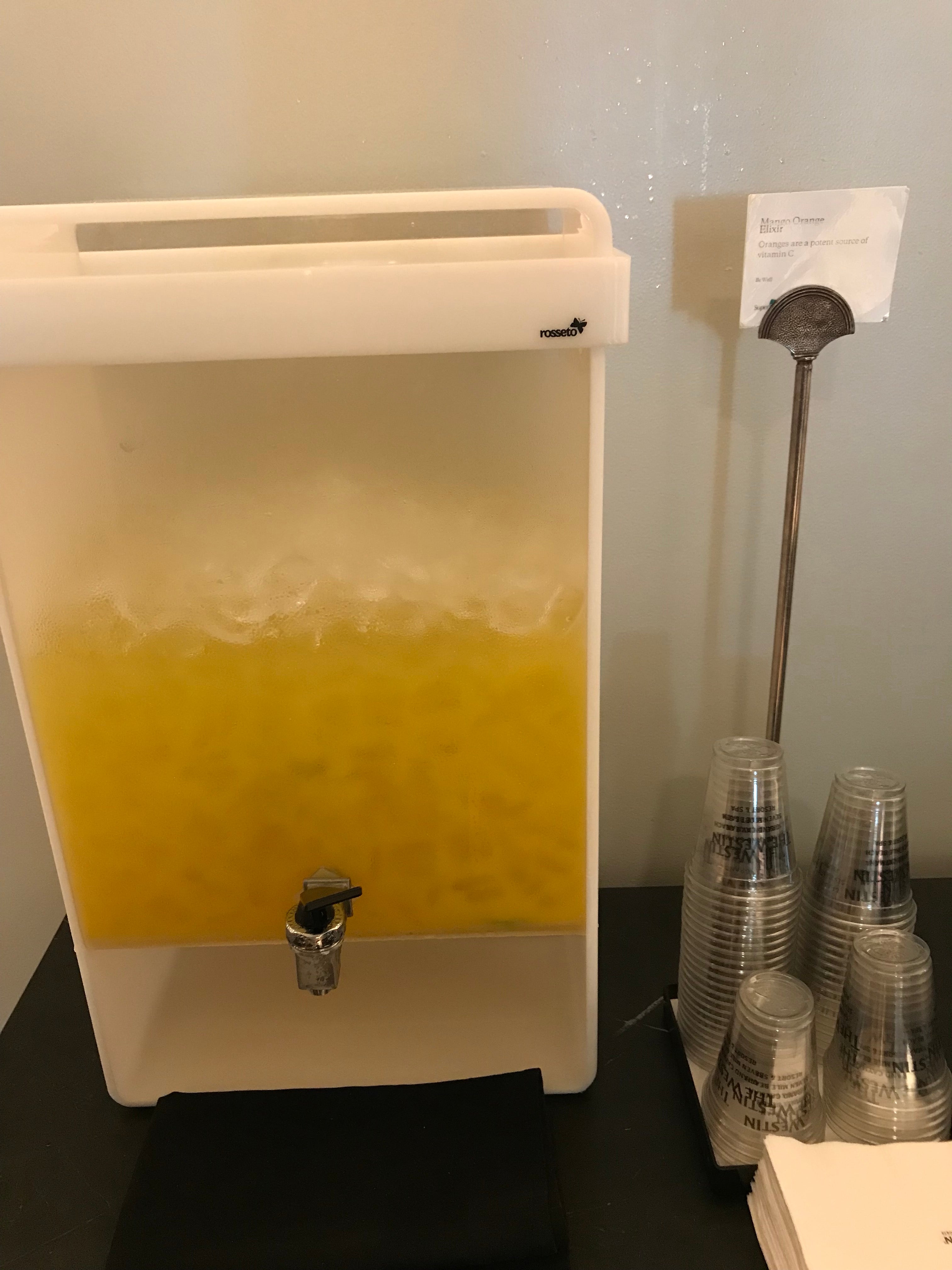 There aren't a ton of free food and drinks at the Westin Grand Cayman, but there are a few things to be aware of so you can snack and save. First, the juice in the lobby is free, consistently refilled, and the perfect pairing for your poolside meal.