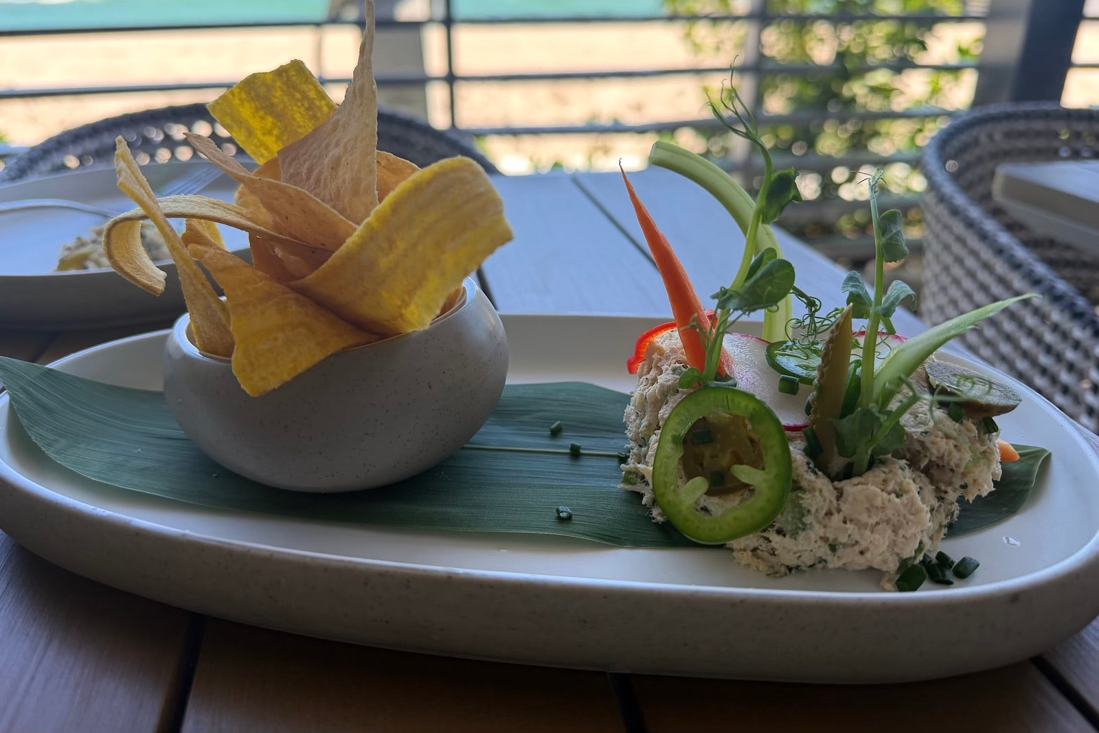 And don't forget to stop by breezy Playa Beach Bar & Grill for the smoked island fish dip ($24), a tasty dip made of celery, pickled veggies, carrots, radish and chives with tortilla and plantain chips. Another winner for me was the island poke bowl, with ahi tuna and rice noodles ($28).