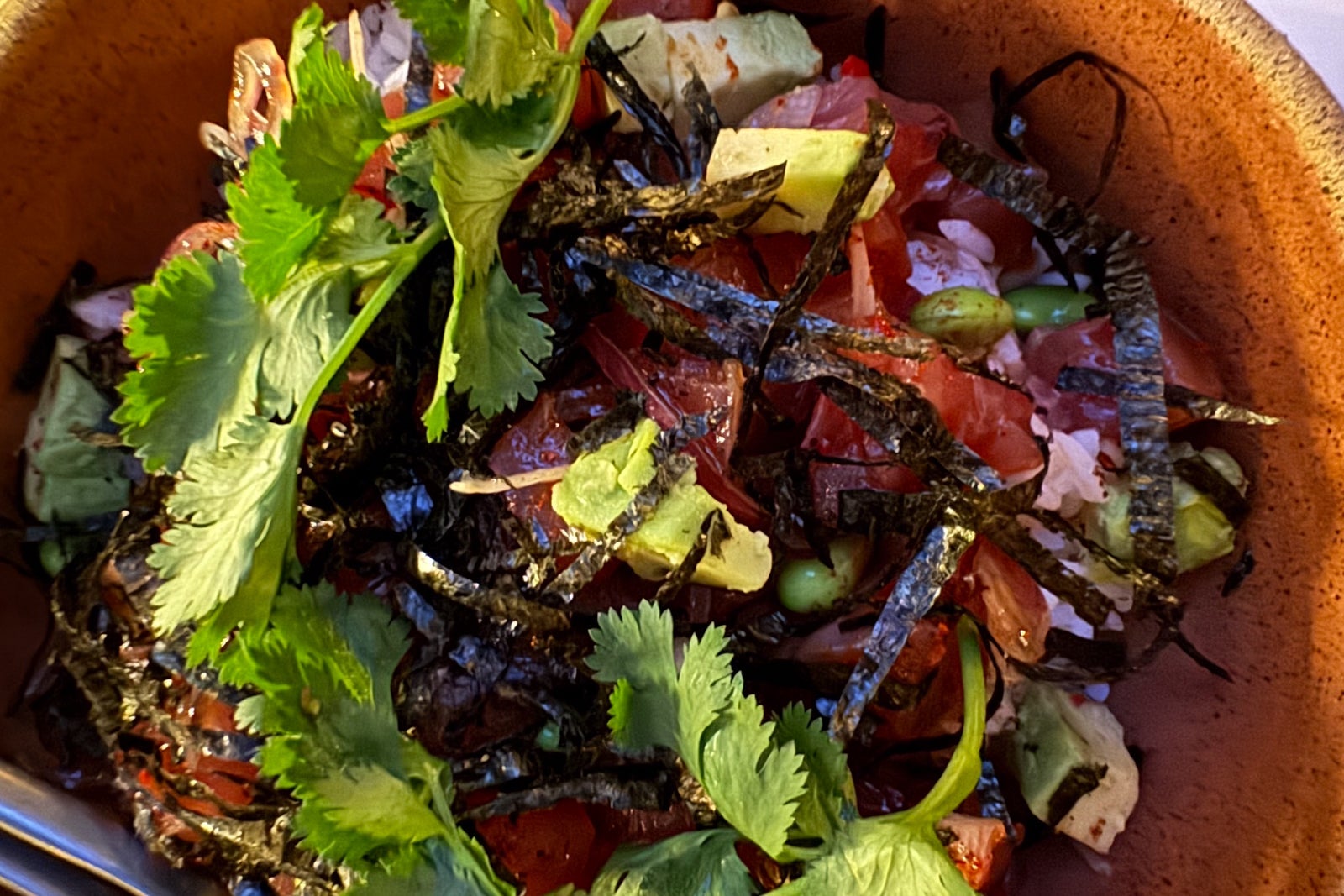 My favorite dinner included a refreshing tuna poke bowl with jasmine rice, cucumber, avocado, chili, green onion and lime (about $24).