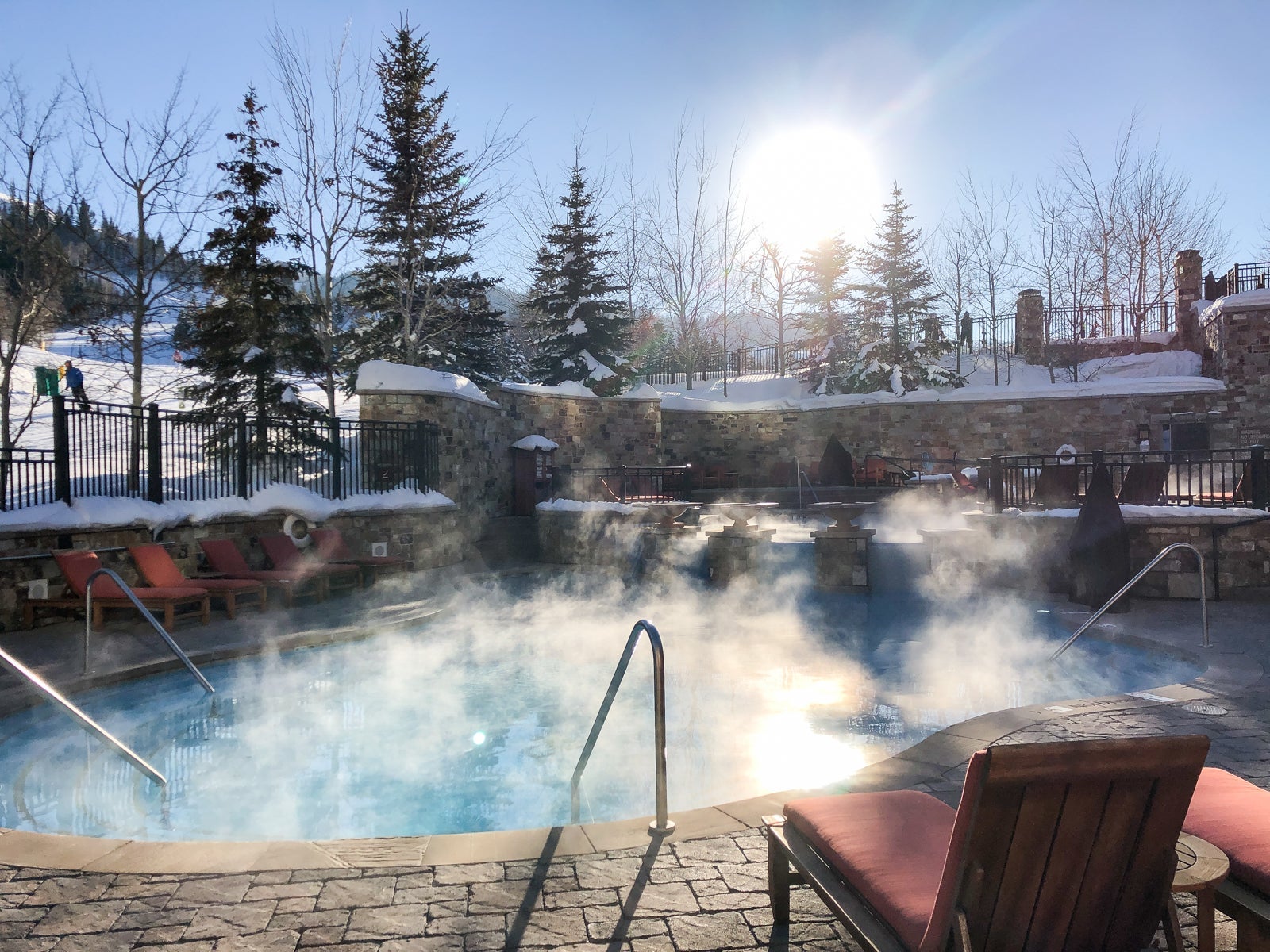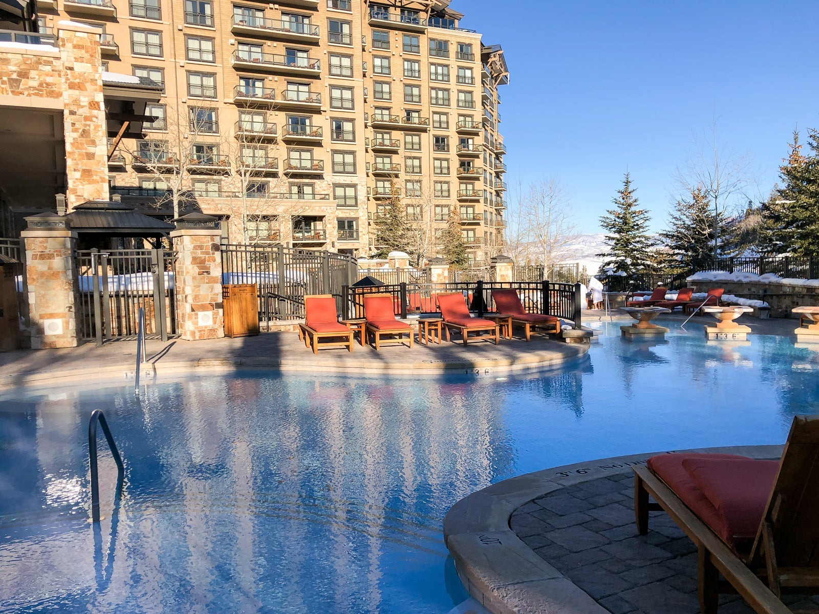 Let's start with the pools. The hotel had a multilevel pool complex with heated pools and two hot tubs directly next to the ski run that took you into the hotel.