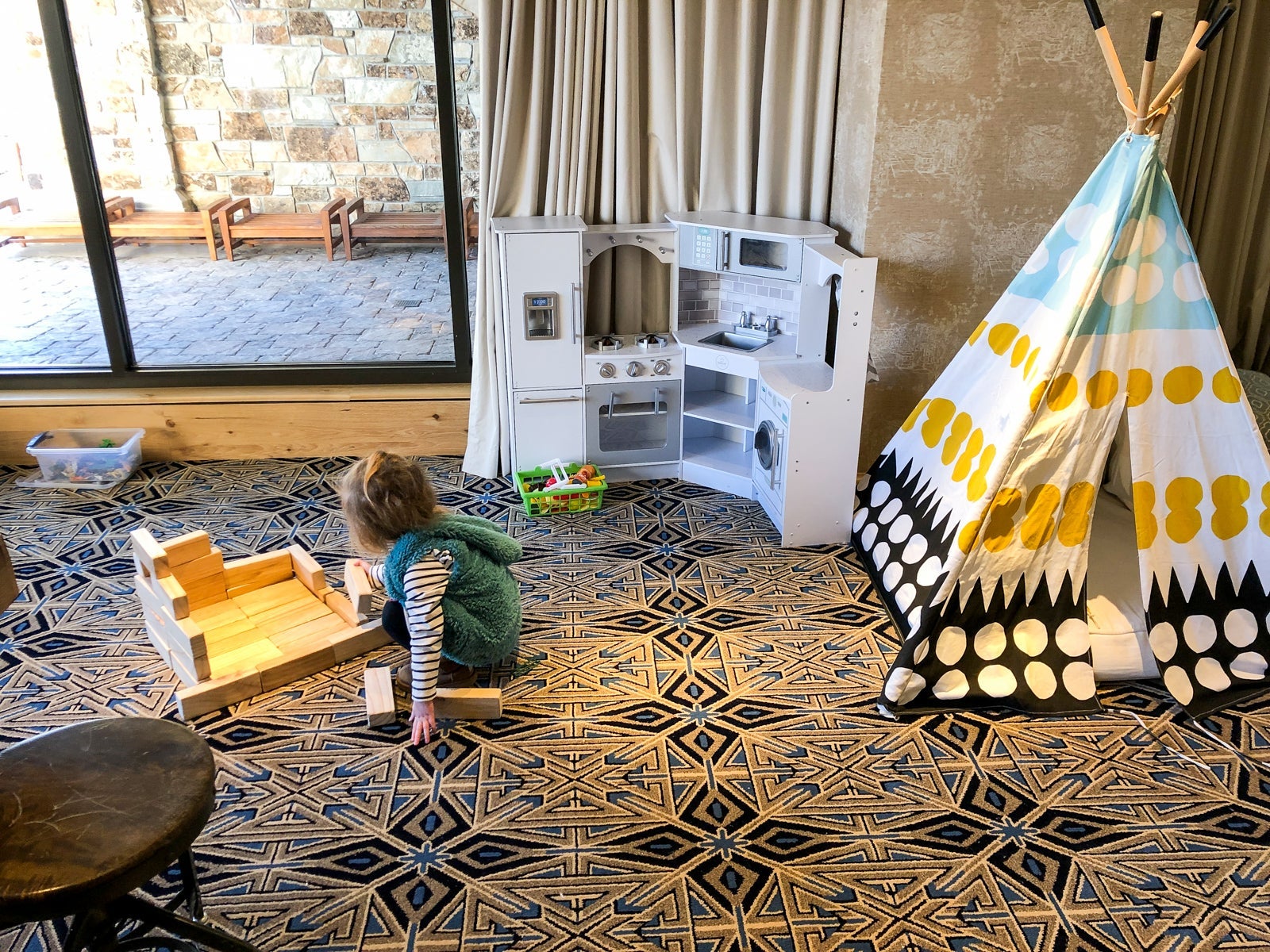 On the final morning (when I could barely get out of bed), a babysitter from Mother Goose of Utah (who was amazing) took my girls to play in the playroom for a couple hours, and they loved their time in this bright, well-decorated and fun space.
