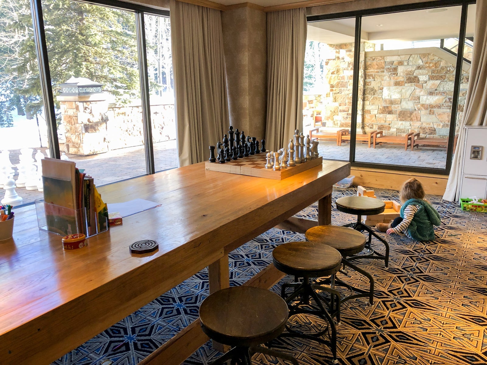 The St. Regis Deer Valley had the most unique kid's club arrangement that I've come across. It was on the same lower level with the ski valet and rental shop and was open from 10am to 7pm.