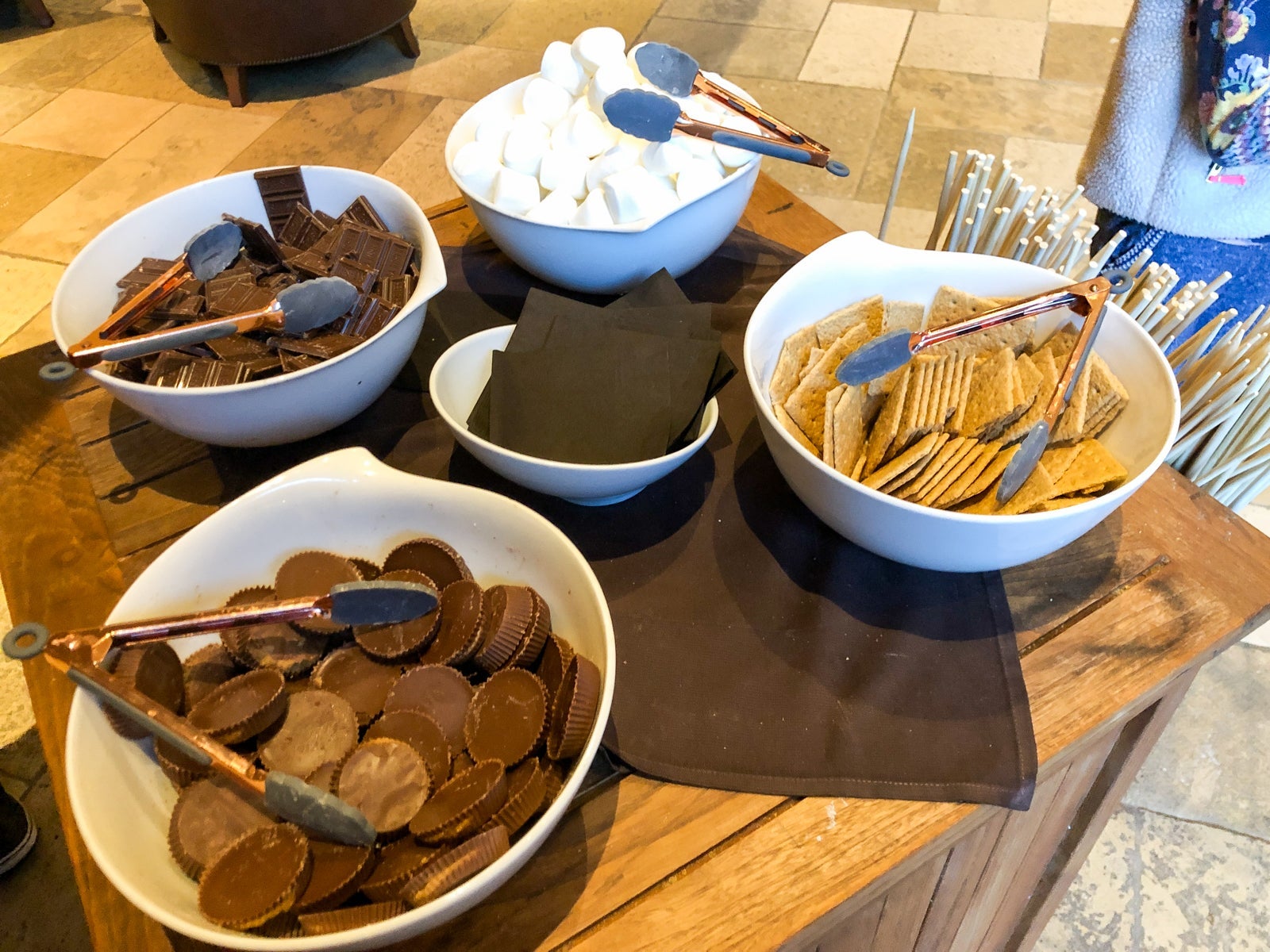 The evening s'mores and Champagne were well done at this resort and not to be missed. The s'mores here were anything but standard. They had everything neatly arranged for you to take out to the fire pit, and the offerings even include Reese's — which go quite well on a s'more, as it turns out.